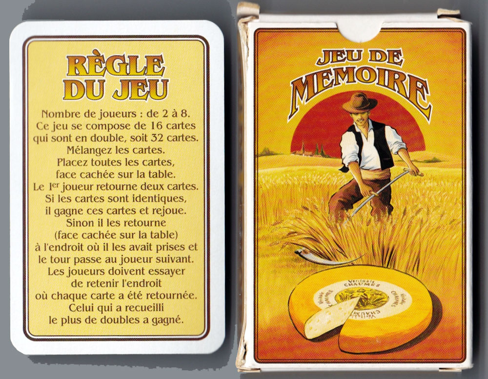 Jeu de Memoire card game promoting Véritable Chaumes cheese from the village of St Antoines in south west France.