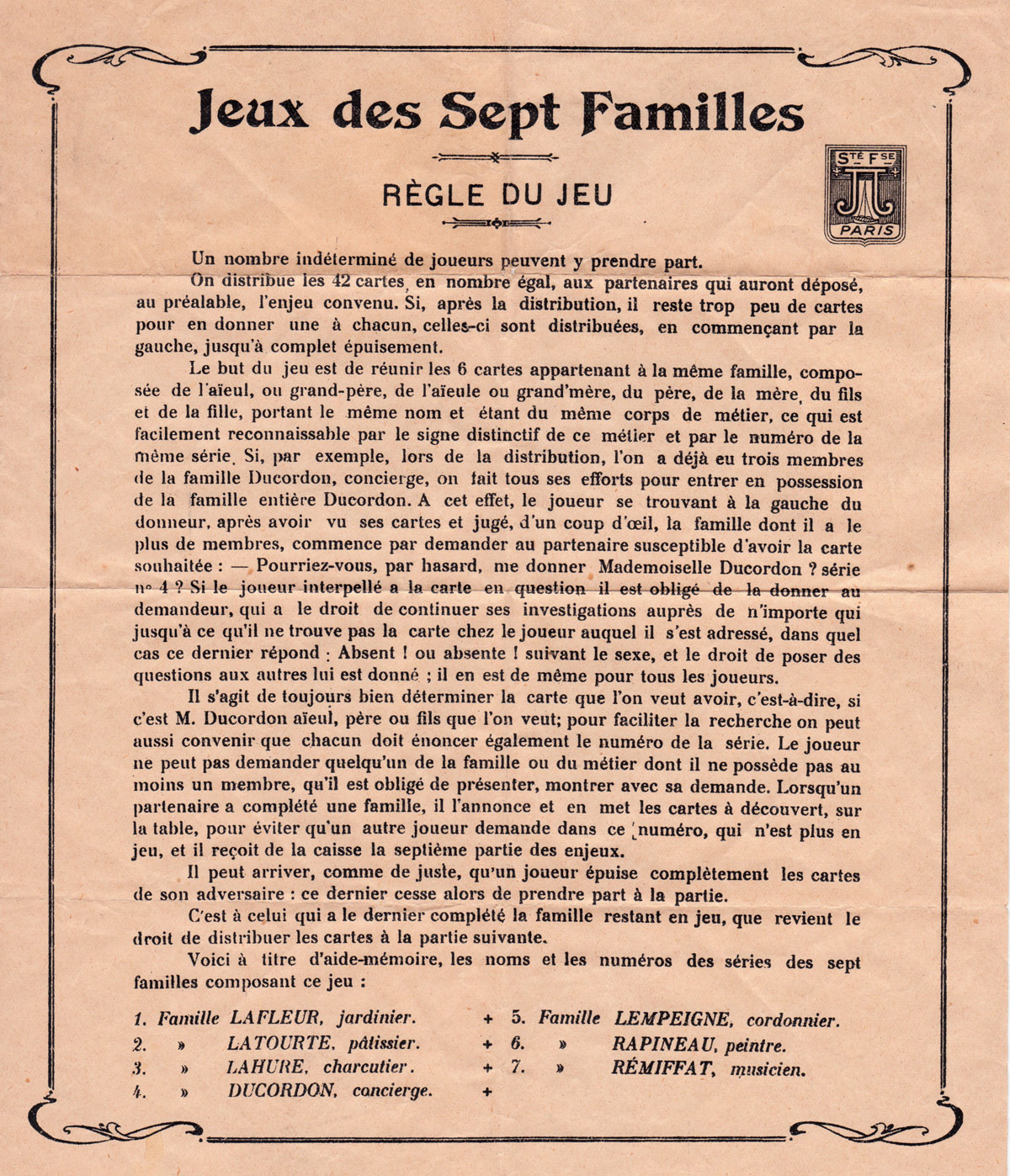 “Jeu des 7 Familles” by Jeux et Jouets Français of Paris, 1904.