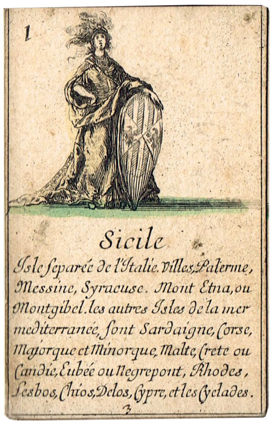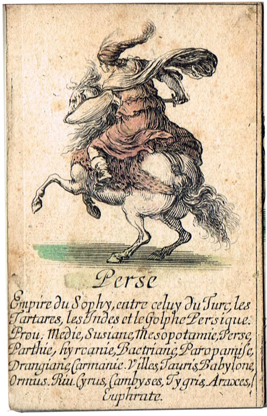 “Jeu de Géographie” educational playing cards etched by Stefano Della Bella and published in c.1644.