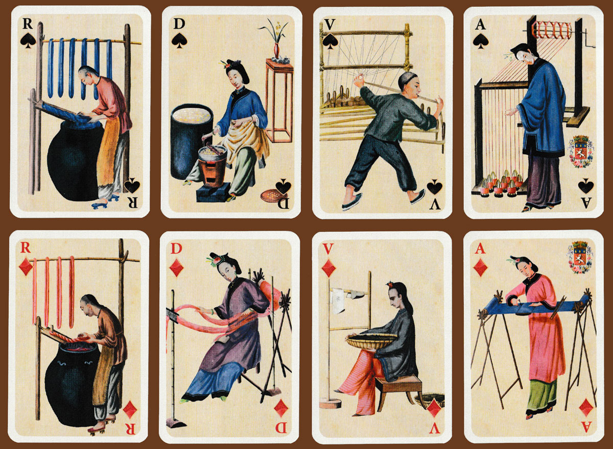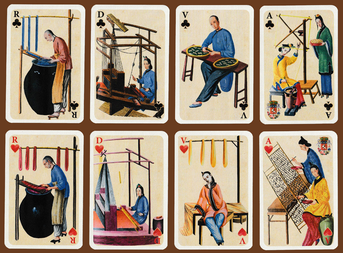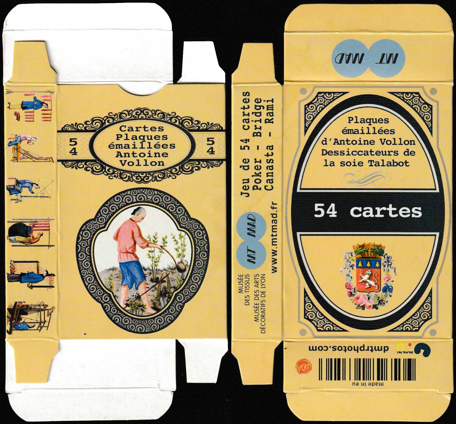 Above: Les plaques émaillées d’Antoine Vollon playing cards made in the E.U. for the Musée des Tissus and the Musée des Arts Décoratifs de Lyon, Lyon, France, c2013. 52 cards + 2 Jokers + 1 title card in tuck box. Size: 58 x 88 mm. Purchased in Lyon, December 2013.