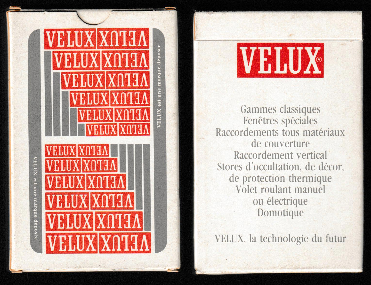 Above: Velux windows publicity playing cards, made in Belgium by Carta Mundi, c.1990. 32 cards + 1 Joker in tuck box.