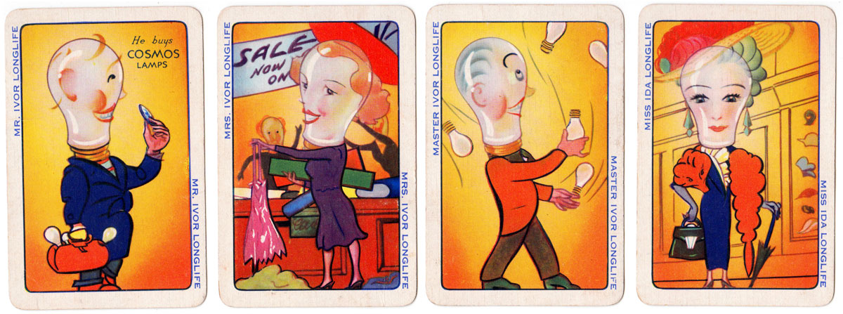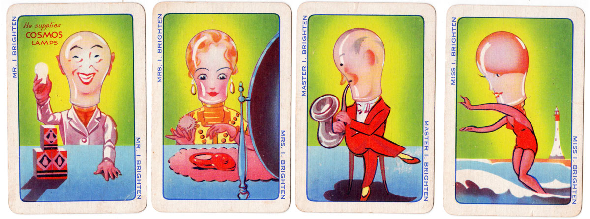 Above: advertising deck for Cosmos Lamps by Universal Playing Card Co (Alf Cooke), c.1939. Image courtesy Matt Probert.