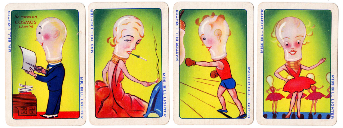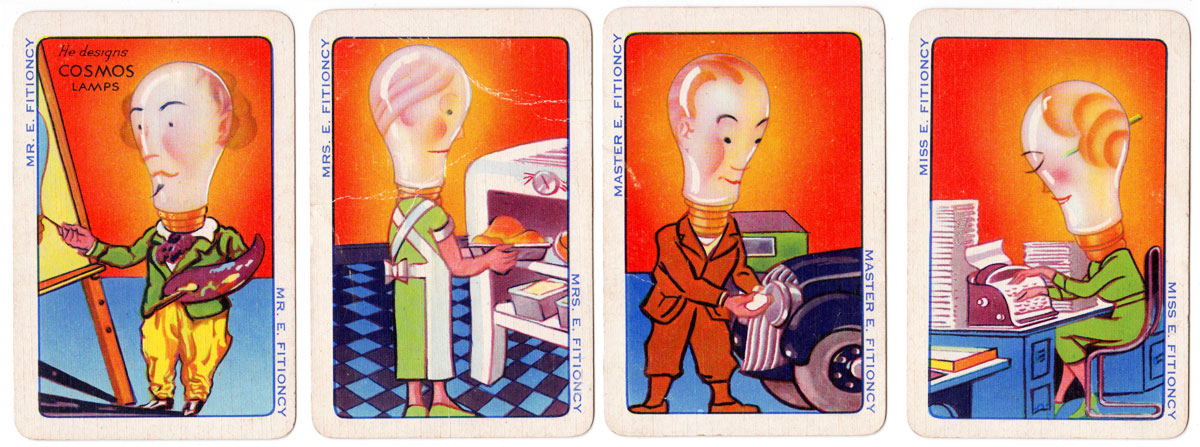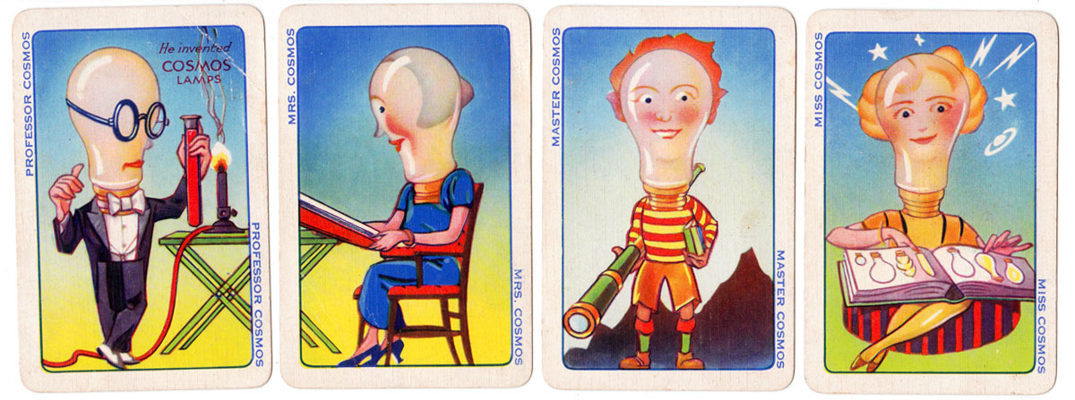 “Brighter Families” promotional card game for Cosmos Lamps (Metrovick), 1930