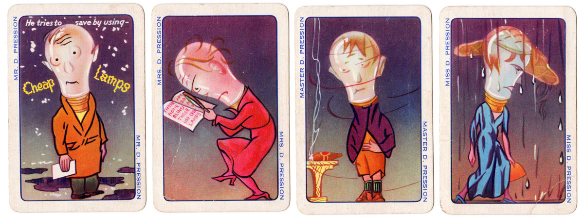 Above: “Brighter Families” promotional card game for Cosmos Lamps (Metrovick), 1930. 32 cards in box. Images courtesy Rex Pitts.
