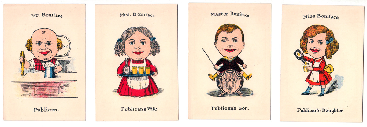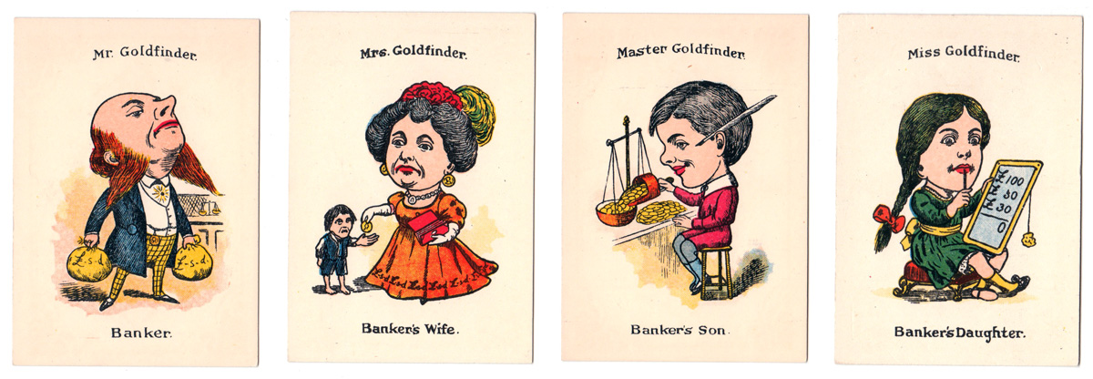 “Jovial Families” - a Victorian family card game published by A. Collier, London, c.1890, reminiscent of the “grotesque” but humourous Happy Families games produced by Jaques Ltd.