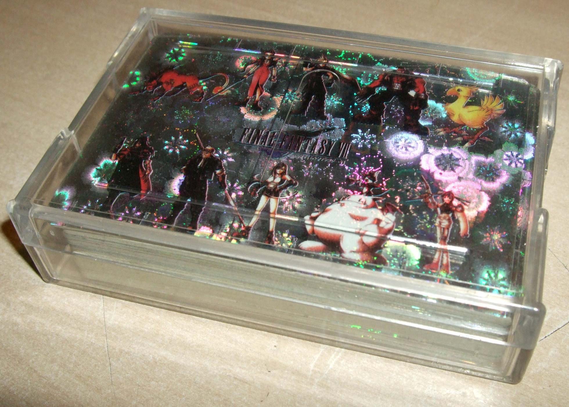 Above: playing cards based on Final Fantasy VII role-playing video game, published in or after 1997. The cards come in a clear plastic box. Made in Taiwan.