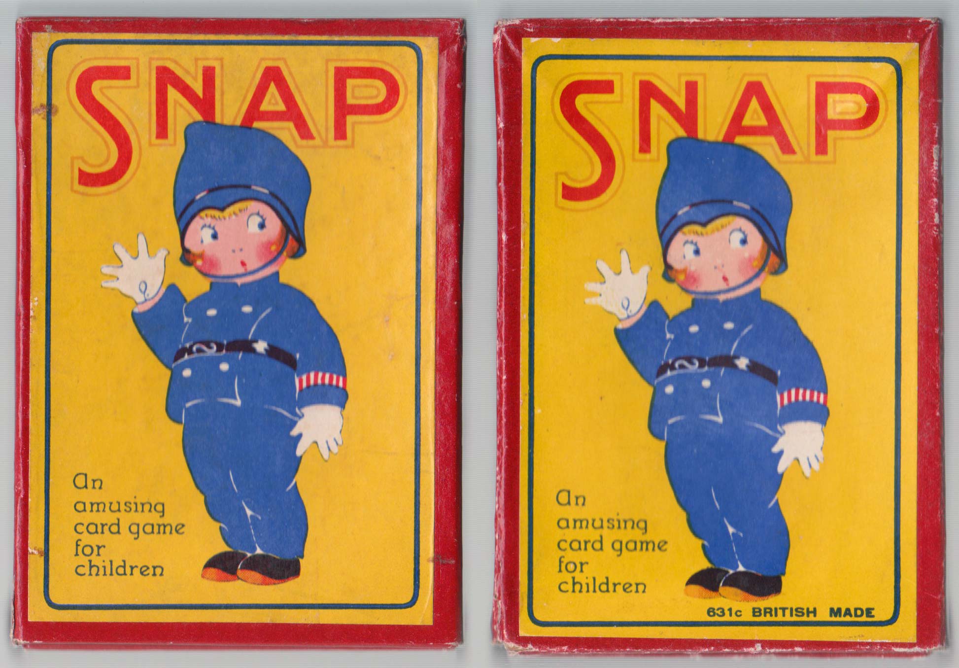 There are other games which were probably exported to the UK by Oppenheimer und Sulzbacher which came from a different supplier without being branded “Globe”. These include two snap packs, one with a child dressed as a policeman on the box and the other a girl with a pony tail skipping, being more suitable for British children.
