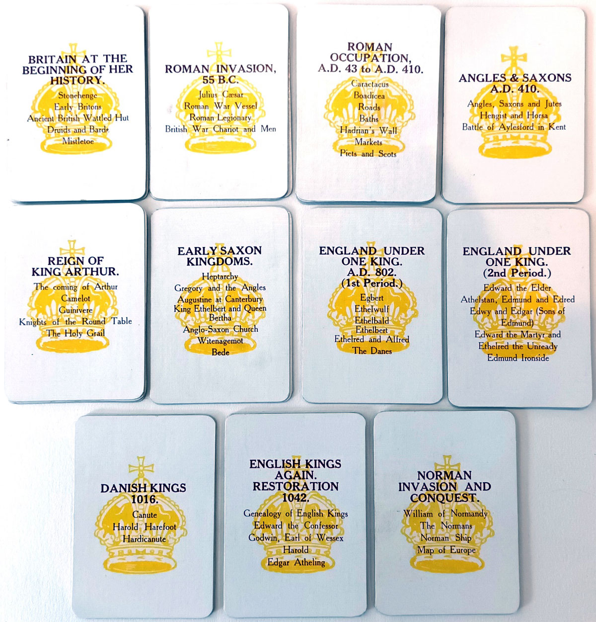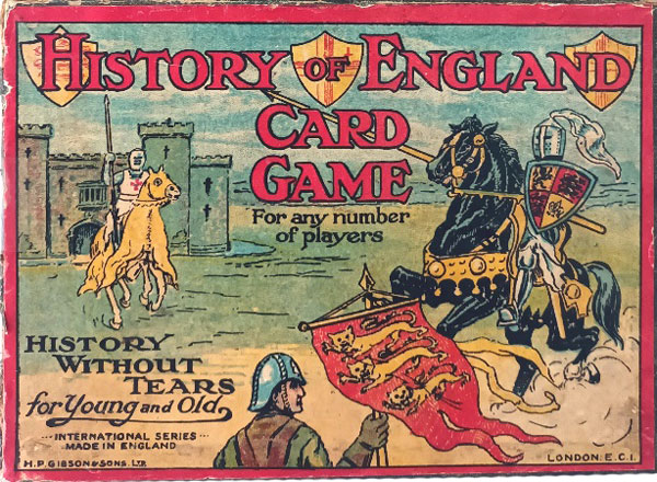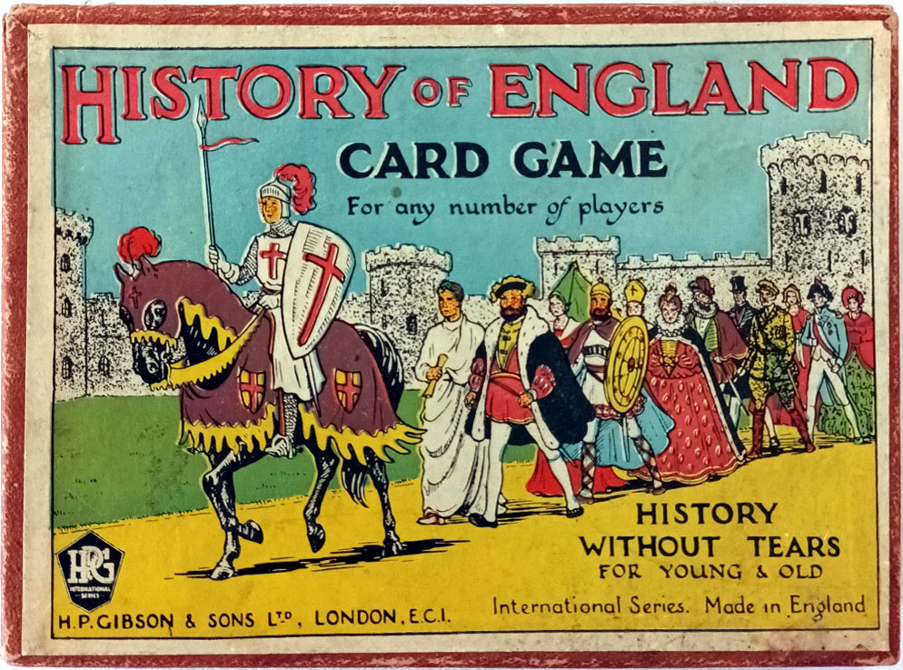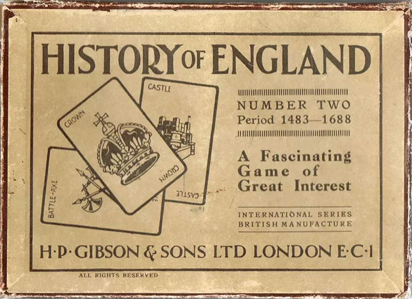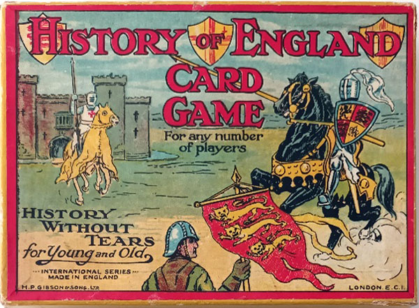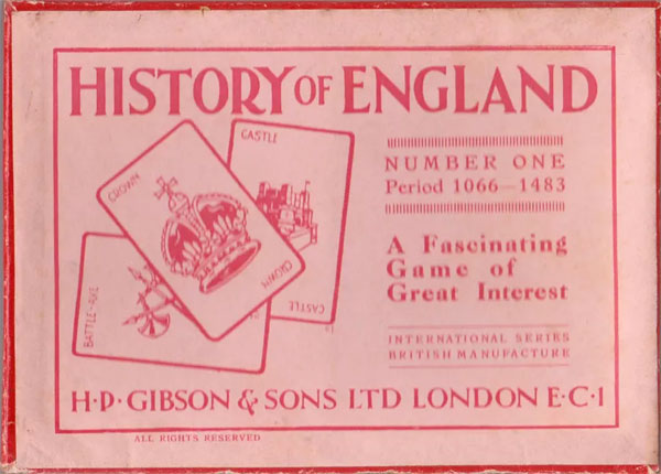 So what do we know? Harry Percy Gibson had originally purchased the International Card Company which he sold to De La Rue in 1919. In that year he established H. P. Gibson & Sons Ltd which produced The History of England Games in three series, each playable as a separate game. The Third series “ends” with “The Great War 1914-1919”. So the 1920s was the earliest these games could have been developed and marketed. But when and for how long?