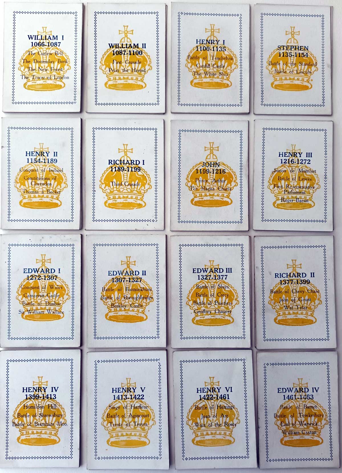 As we have seen, the History of England was divided into three separate series – “each series a complete game in itself”. Series 1 covered the period from William I (1066) to Edward IV (1483); Series 2 ran from Edward V (1483) to James II ((1688), and Series 3 covered the period from William III (1688) to George V (1914).