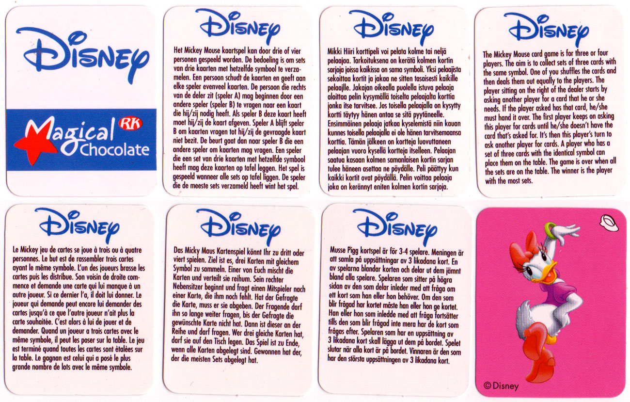 Mickey Mouse card game is part of a promotion for Rübezahl Schokoladen GmbH (Germany).