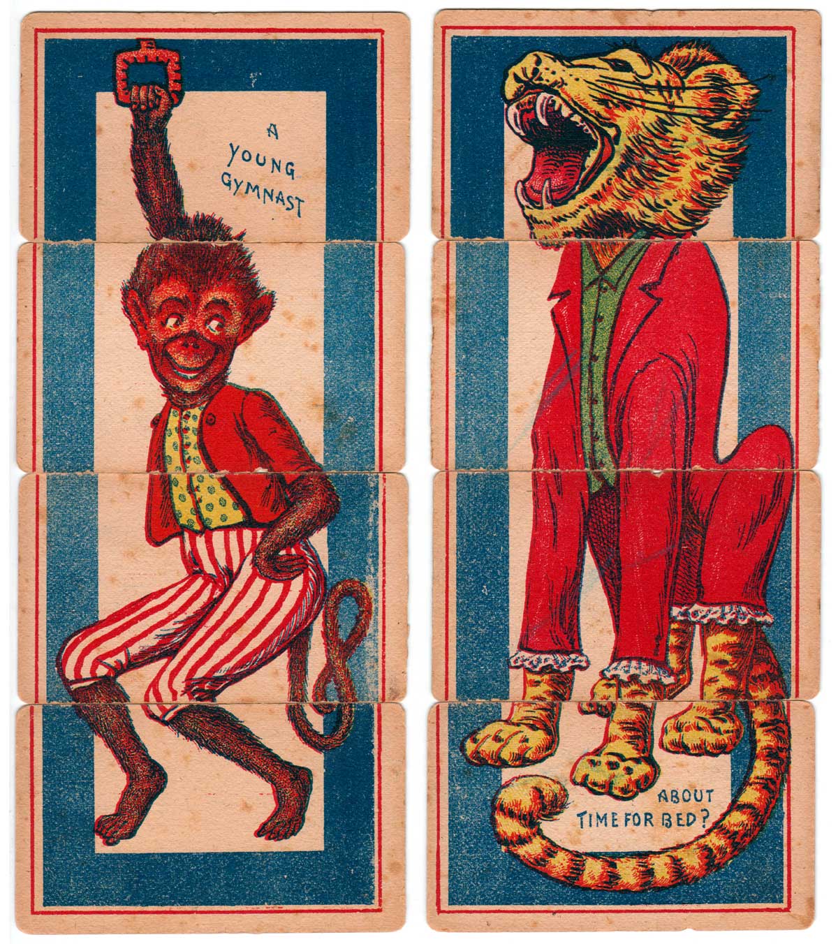 Above: cards from an 'Animal Snap' game printed in red and green, anonymous manufacturer, 36 cards, plain backs more►