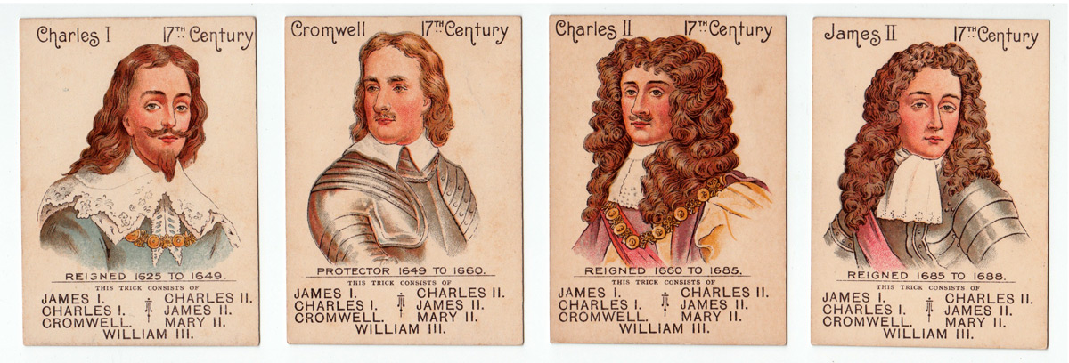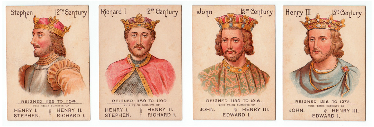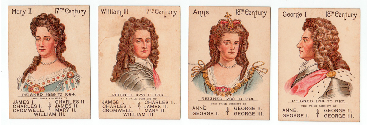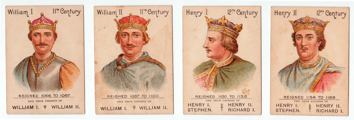 This antique card game features English kings and queens from William the Conqueror to Queen Victori...