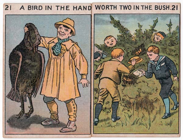 Picture Proverbs was a Victorian card game illustrating popular proverbs which were seen as words of wisdom.