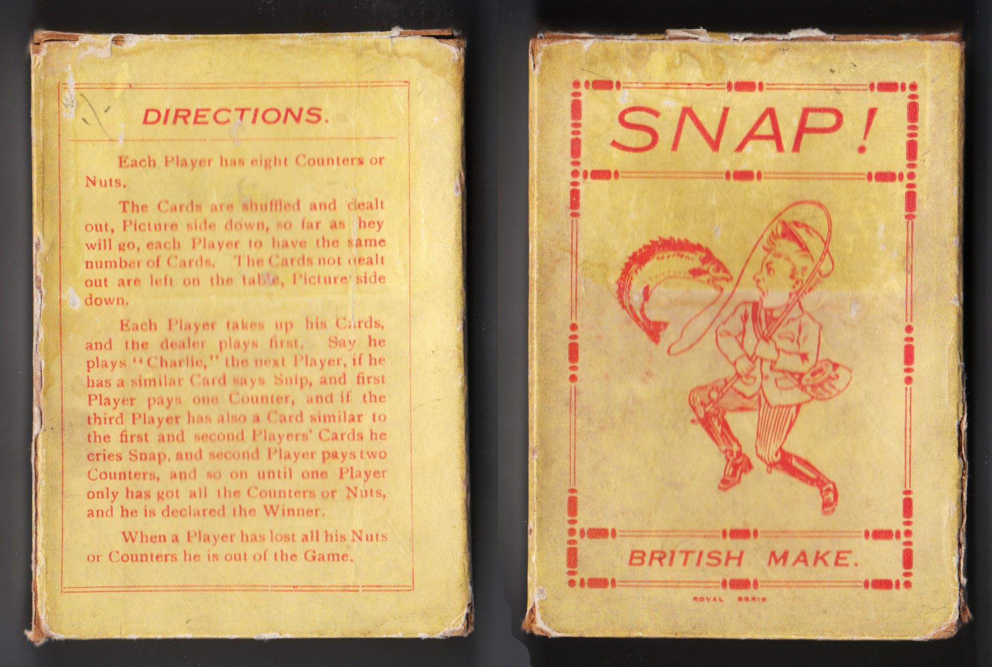 Above: an anonymous Snap game claimed to be “British Make”, c.1930s. The Rules are printed on the back of the box.