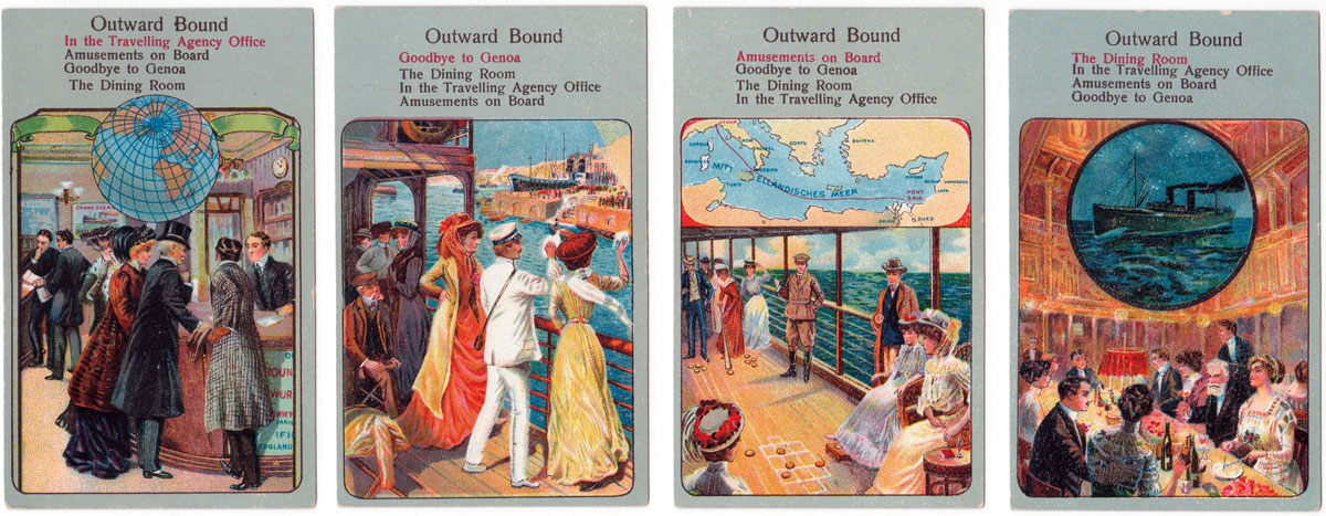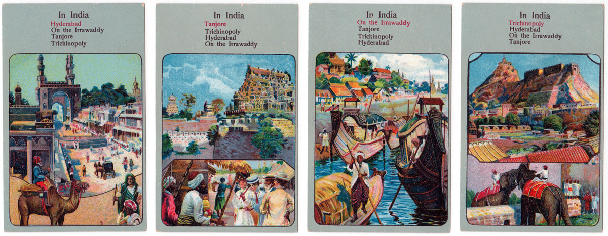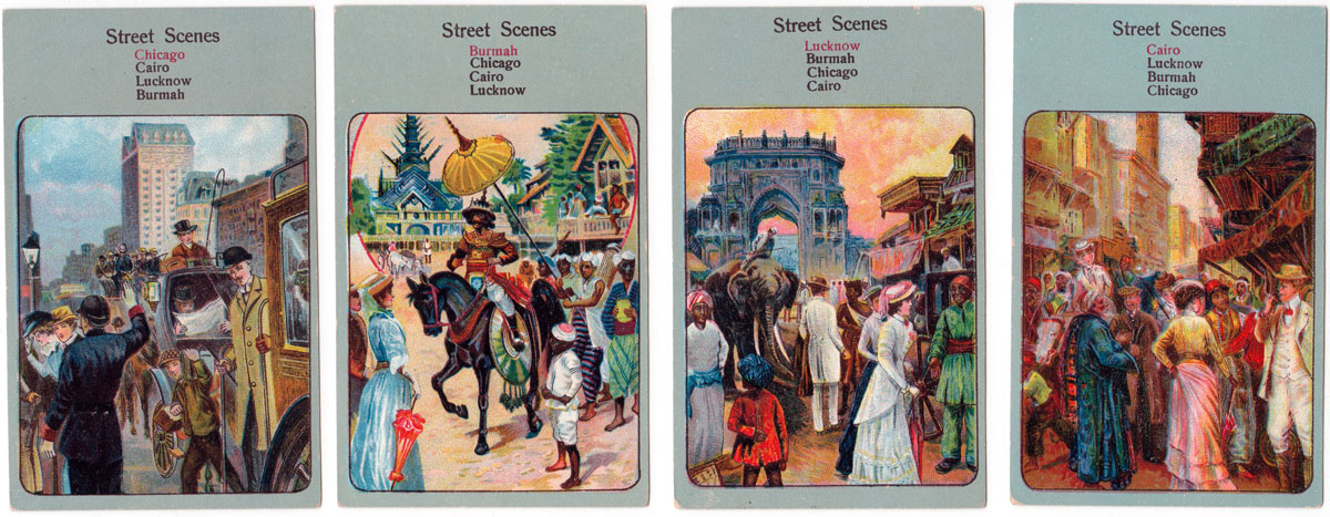 Above: Spear's Globe Trotters quartett game, published by J. W. Spear & Sons, London, 1913. A map of the entire world tour is here→