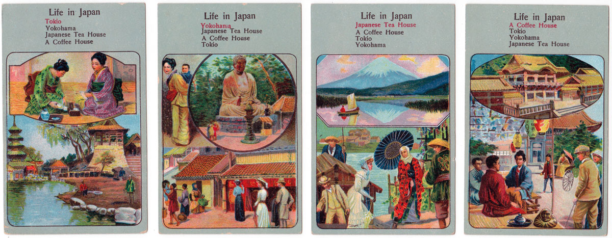 The pack contains 60 cards beautifully illustrated and printed by chromo-lithography, and the rules of the game are that the winner is the one who succeeds in getting the most complete quartetts.