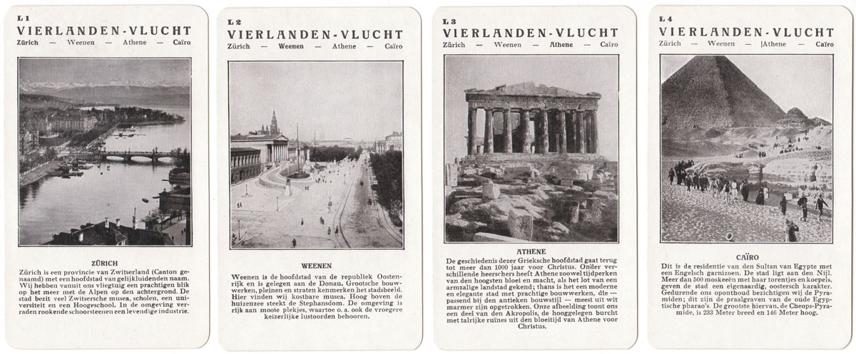 Published in 1933, this game celebrated the burgeoning passenger services by air around the world. Spears Weltflug Quartette was produced in German, Dutch and English versions.