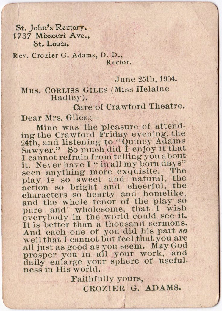 Above: ‘Stage’ card game © 1904 C. M. Clark Publishing Co. Boston, Mass (whose proprietor was Carro Morrell Clark (1867-1950) the first female publisher in the USA). 66 cards in box. The extra card (shown right) was probably part of a publicity campaign to sell a book by Charles Felton Pidgin (1844-1923) by the same publisher.