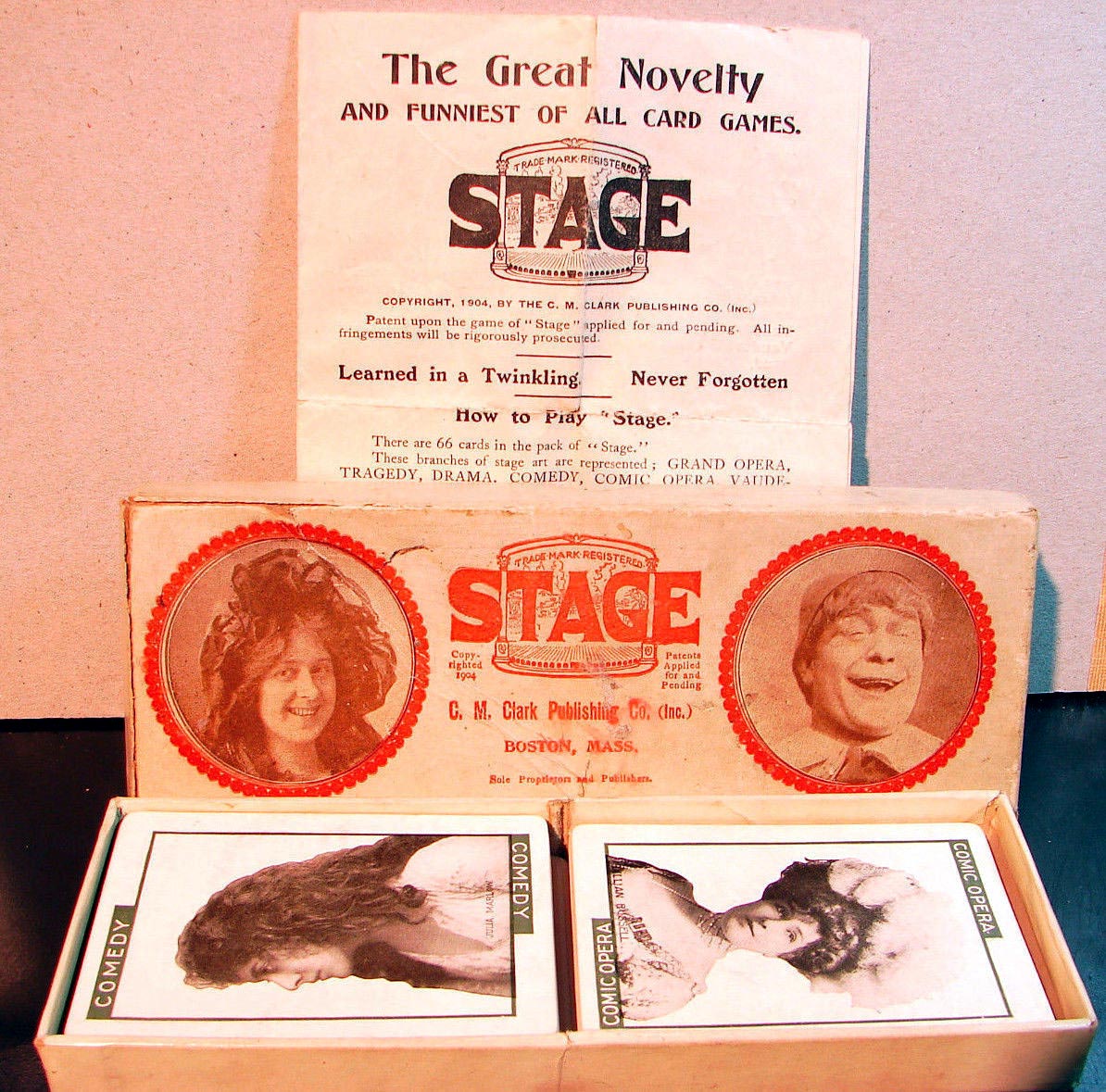 ‘Stage’ card game © 1904 C. M. Clark Publishing Co. Boston, Mass. with portraits of popular actors and actresses.