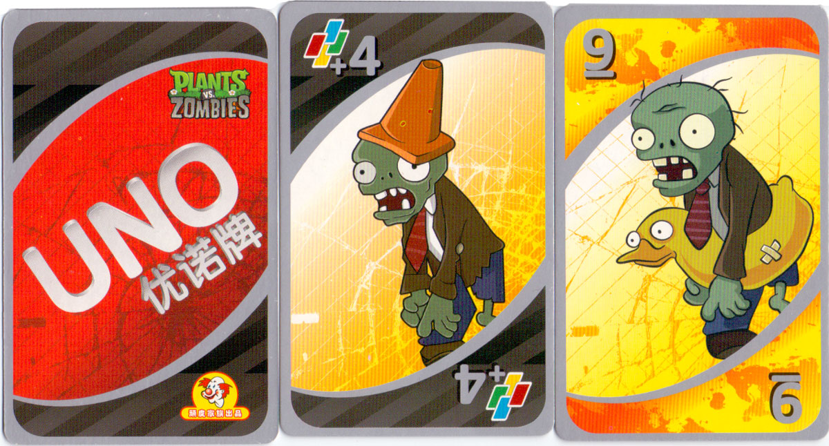 Plants vs. Zombies UNO card set Chinese edition, licensed by Mattel East Asia Limited, 2011.