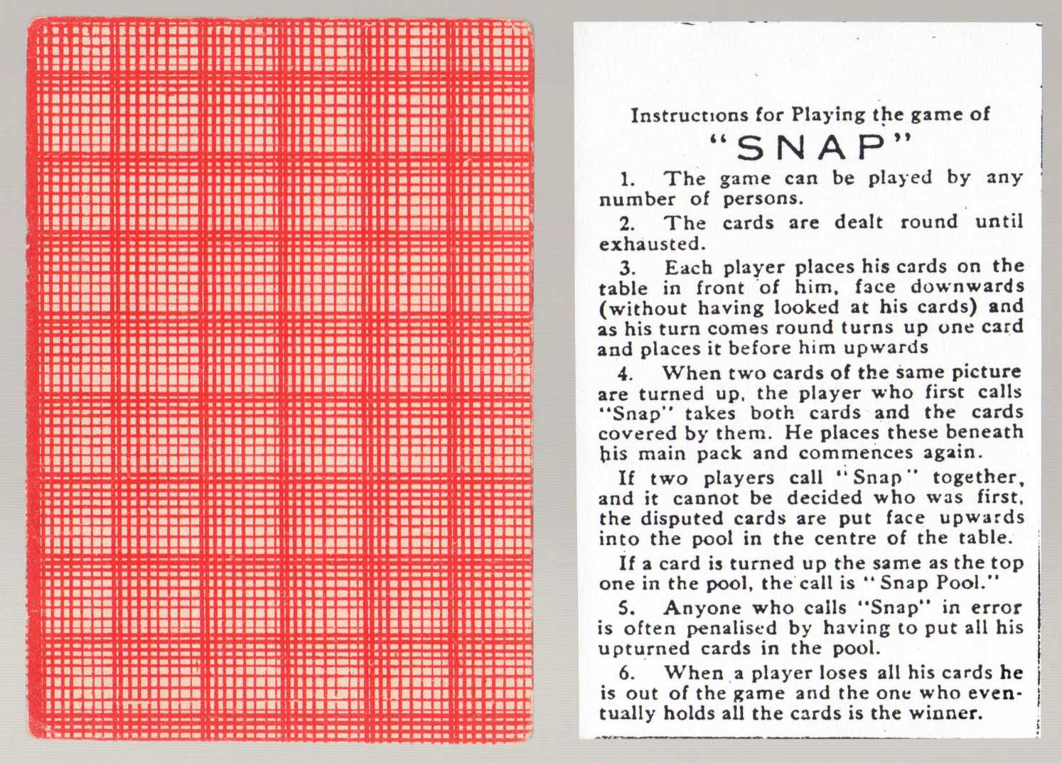 Chad Valley Special Edition ‘Snap’ card game, 1912.