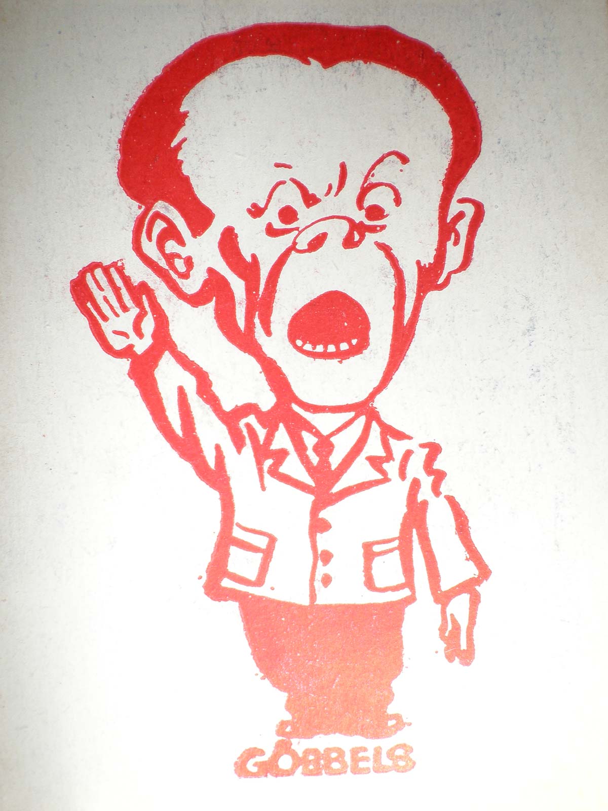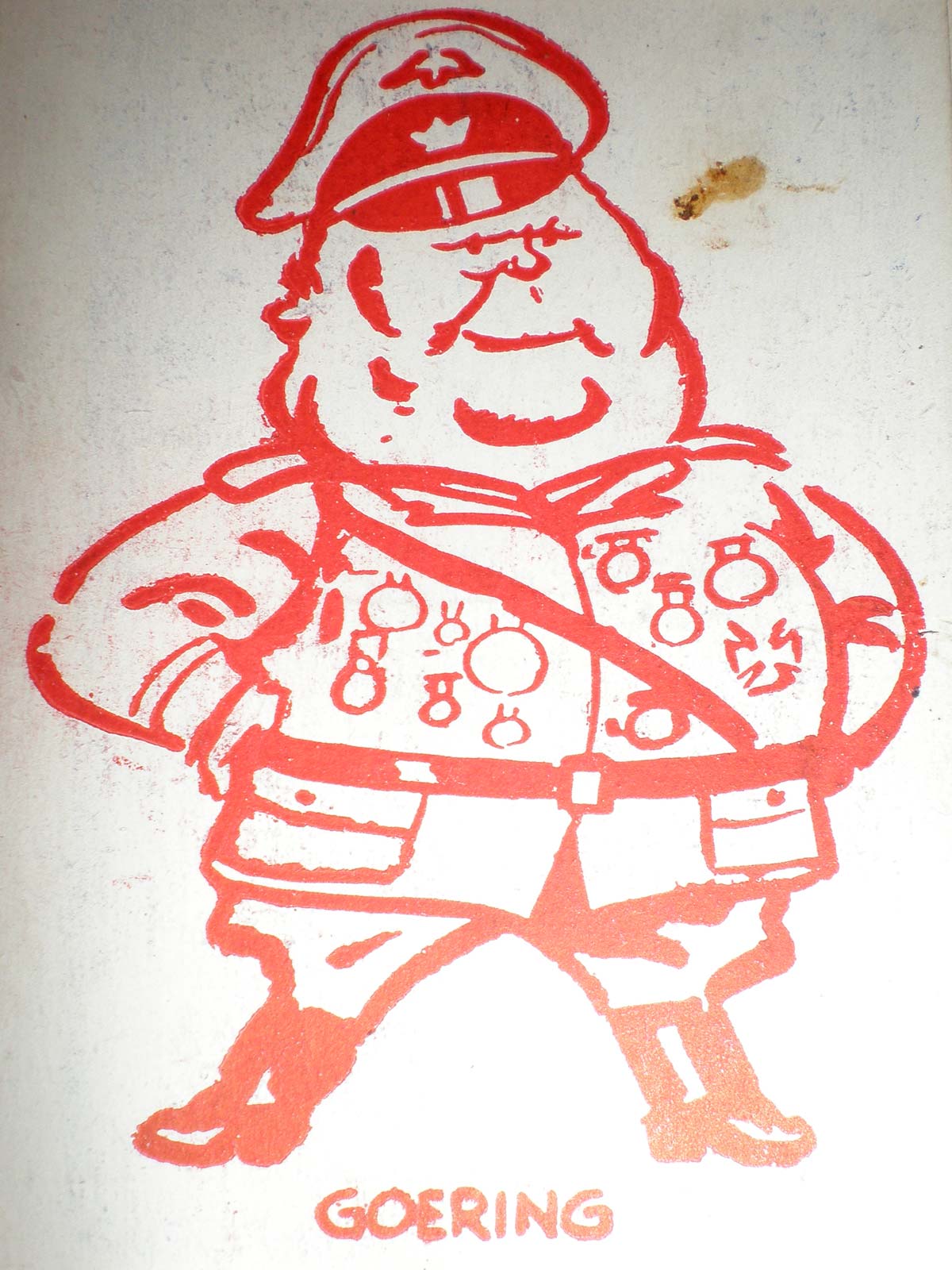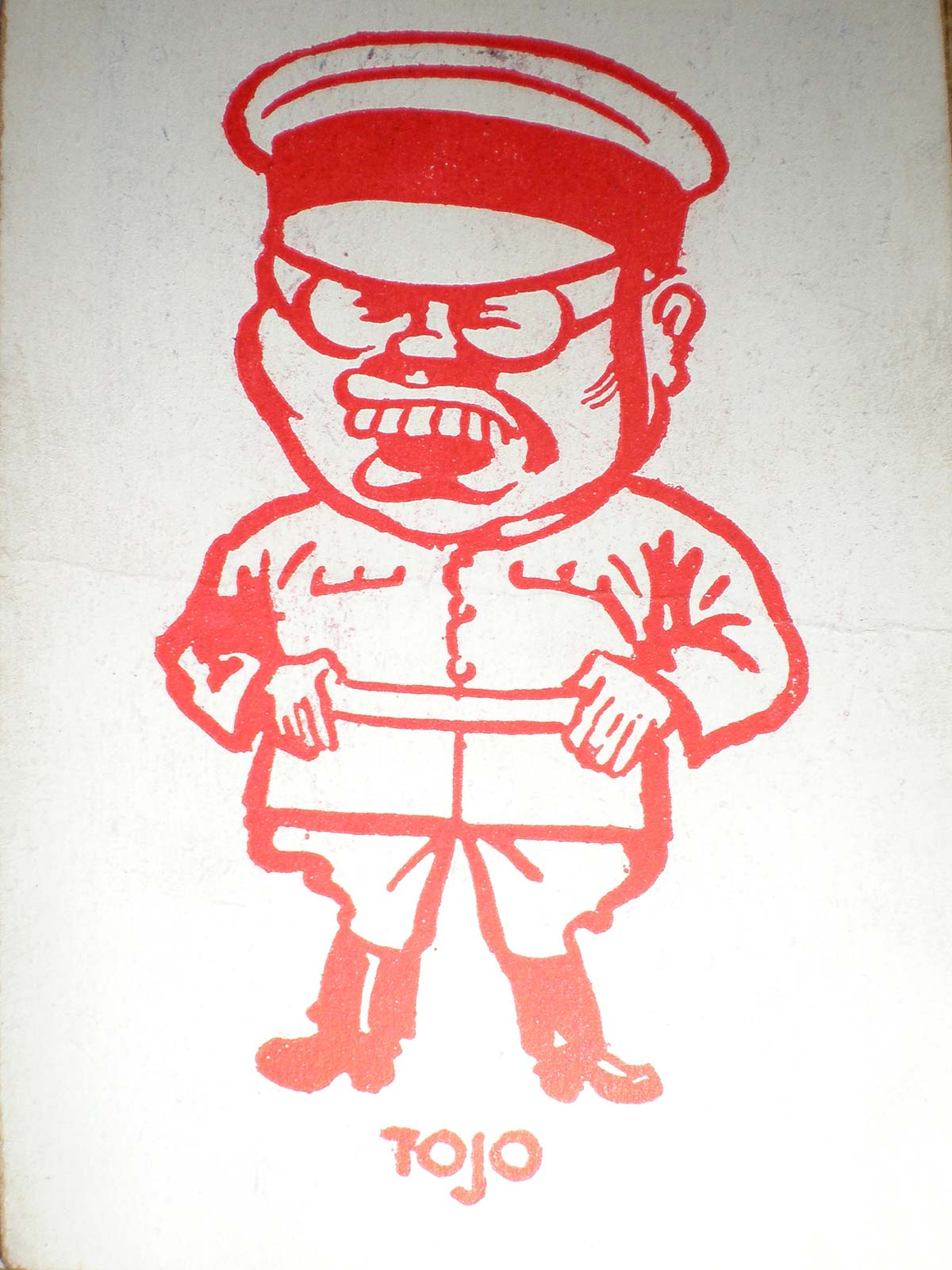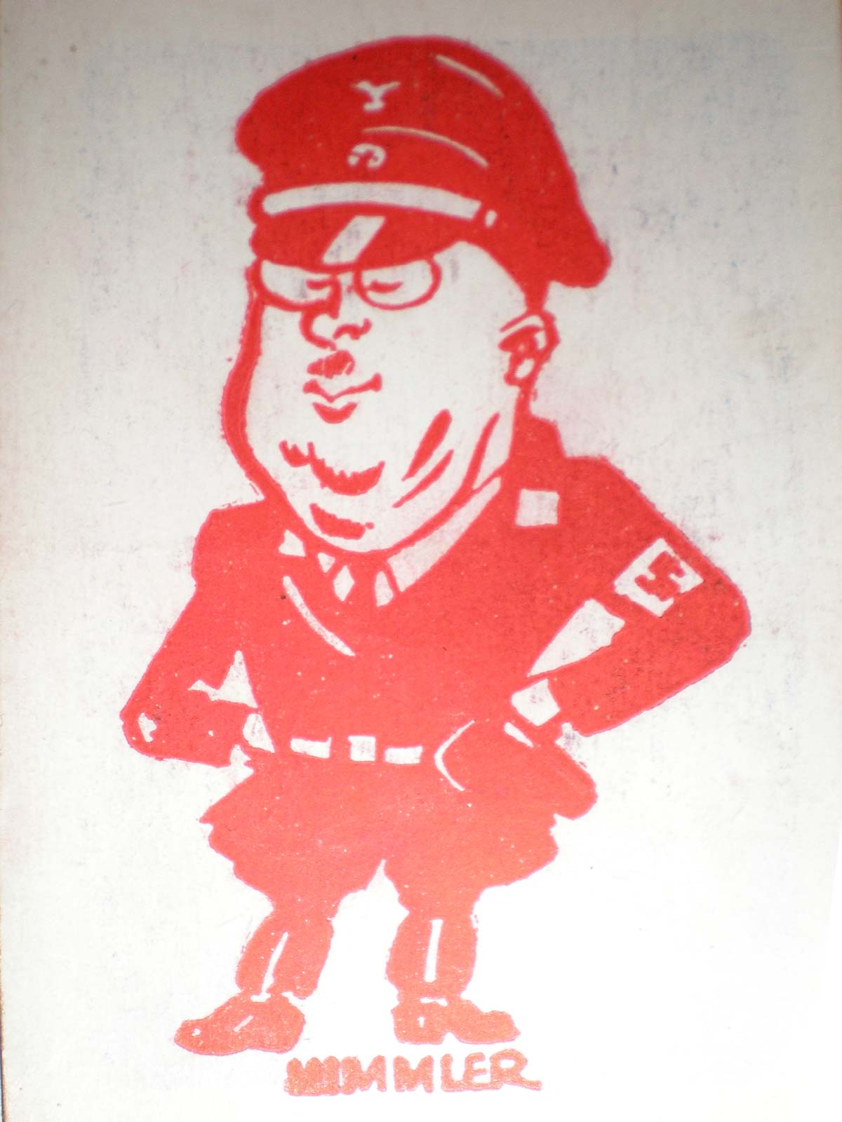 An anonymous wartime Snap game (working title “World Leaders Snap”) comprising 12 different caricatures of generals, dictators and world leaders representing different political ideologies, with large, whimsical funny faces, each repeated four times, including: Hitler, Himmler, Eisenhower, Stalin, Goebbels, Monty, Churchill, General Tojo - and his teeth, with Stalin resembling a little devil. The caricatures are by an unknown artist and reveal a sense of fun and humour. The reverse shows an Alpine mountain scene.