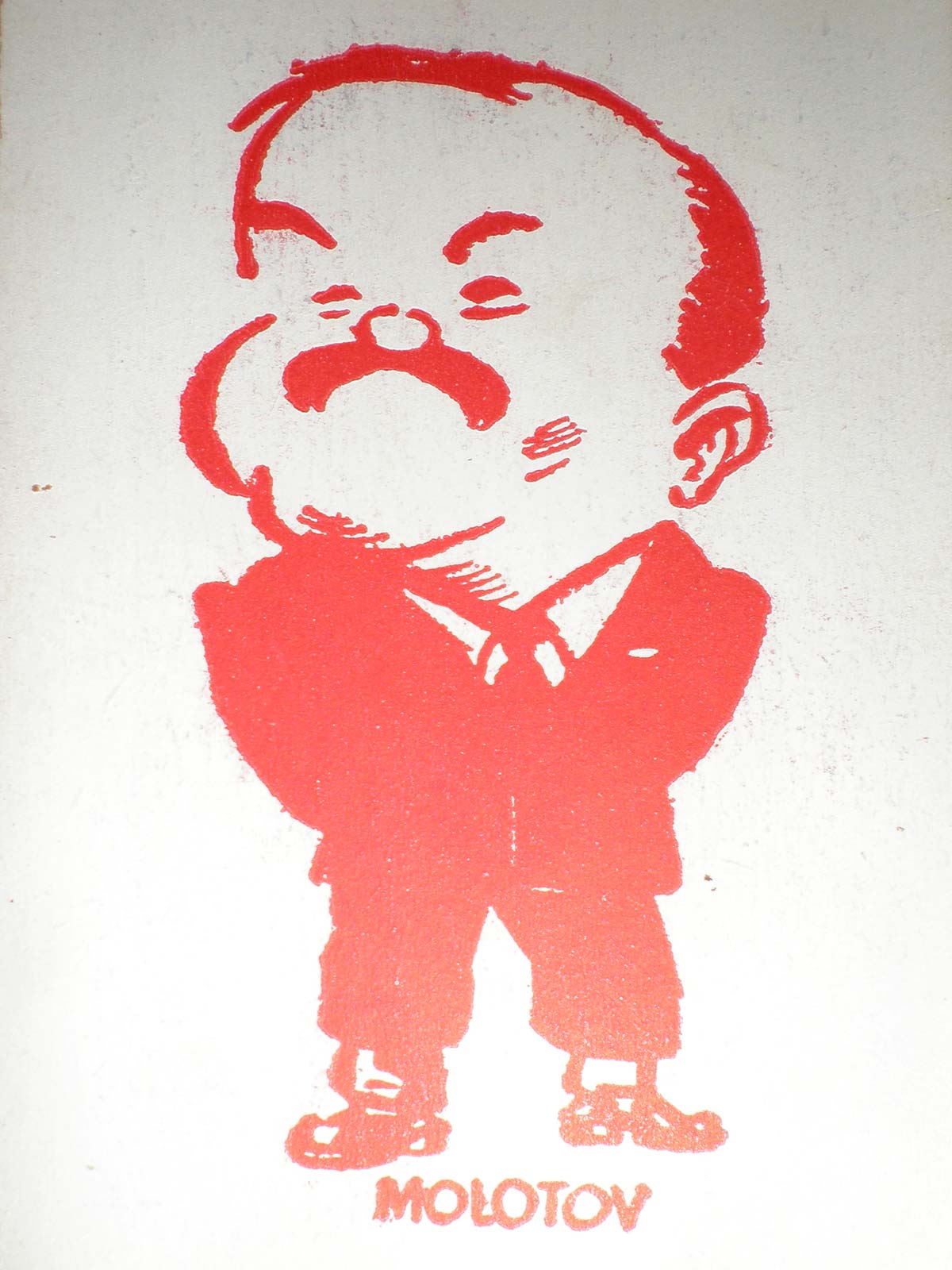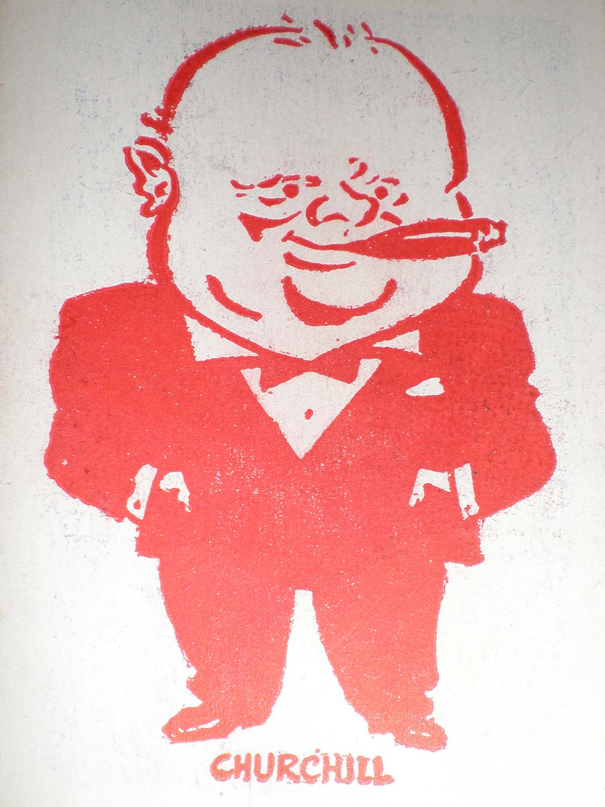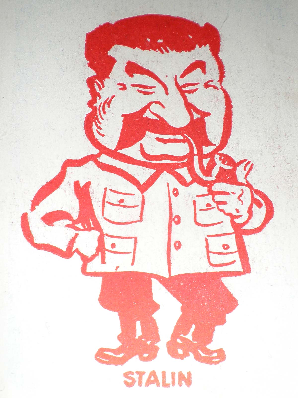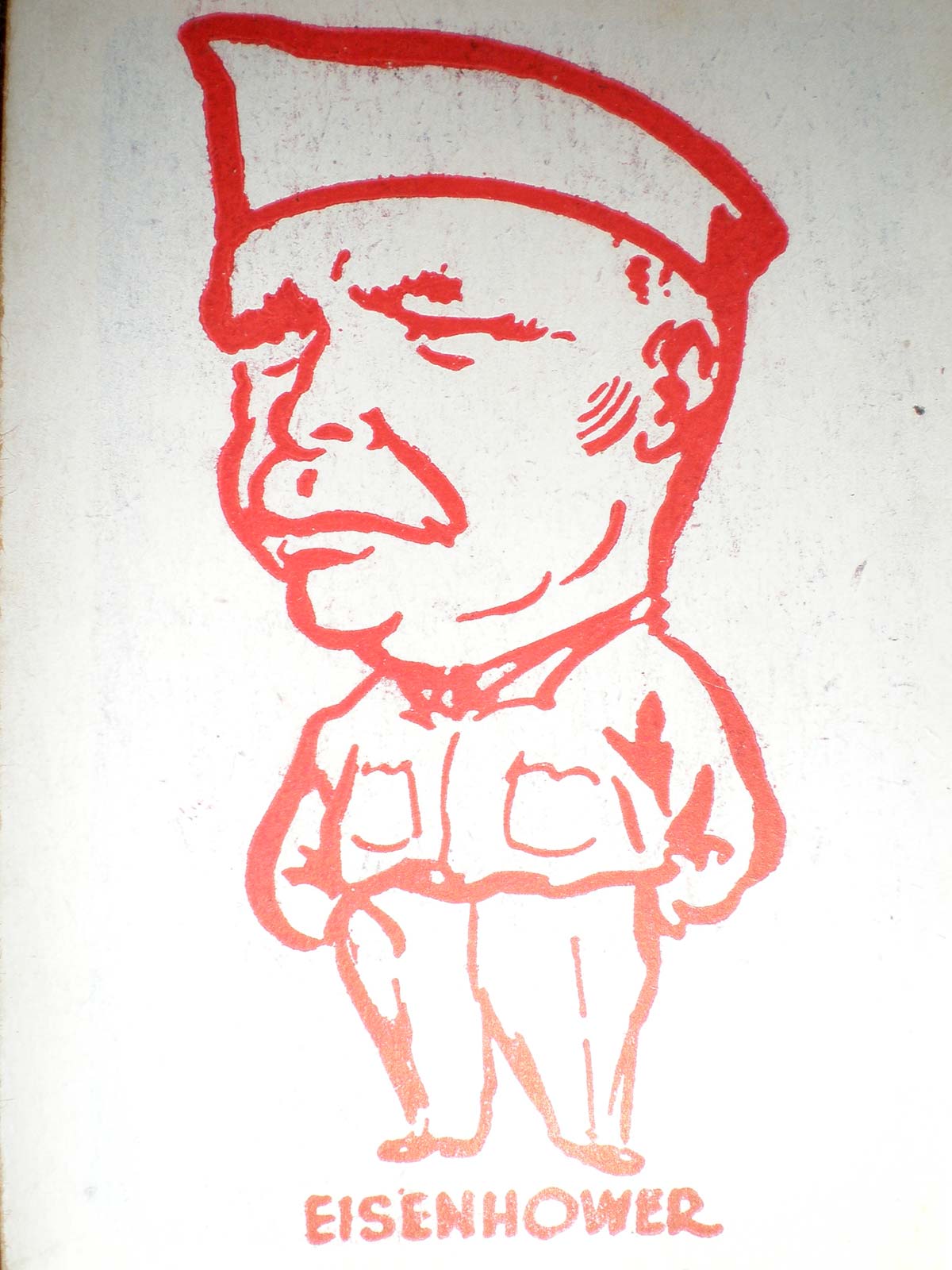 An anonymous wartime Snap game (working title “World Leaders Snap”) comprising 12 different caricatures of generals, dictators and world leaders representing different political ideologies, with large, whimsical funny faces, each repeated four times, including: Hitler, Himmler, Eisenhower, Stalin, Goebbels, Monty, Churchill, General Tojo - and his teeth, with Stalin resembling a little devil. The caricatures are by an unknown artist and reveal a sense of fun and humour. The reverse shows an Alpine mountain scene.