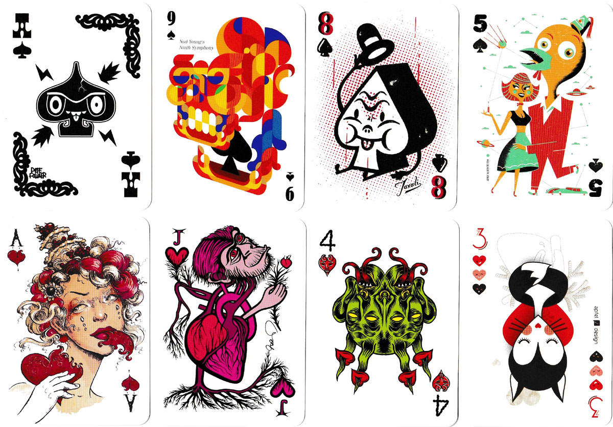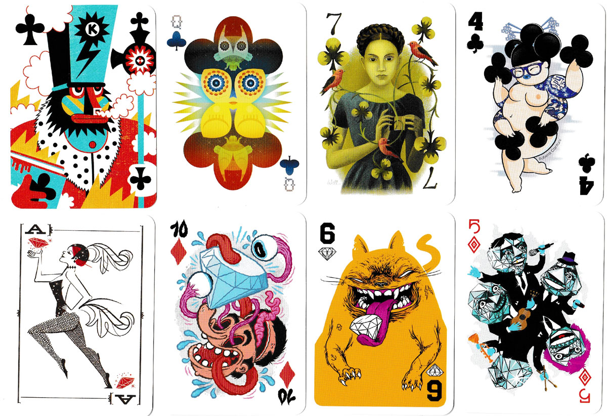Above: cards from ‘Aces Playing Cards’ collaborative art deck published by Zeixs, Cologne (2nd edition), 2012.