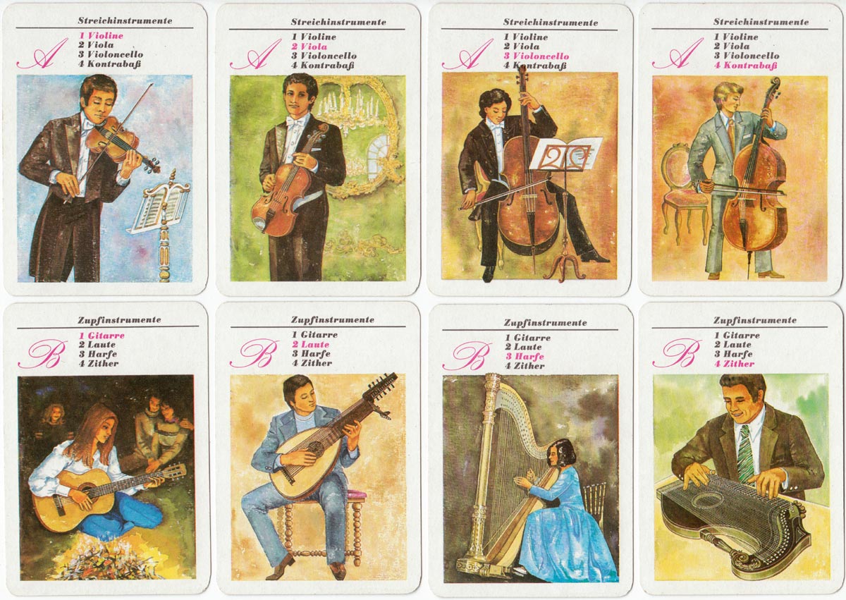 Musikinstrumente quartet game published by Verlag für Lehrmittel, Pössneck, 1984.