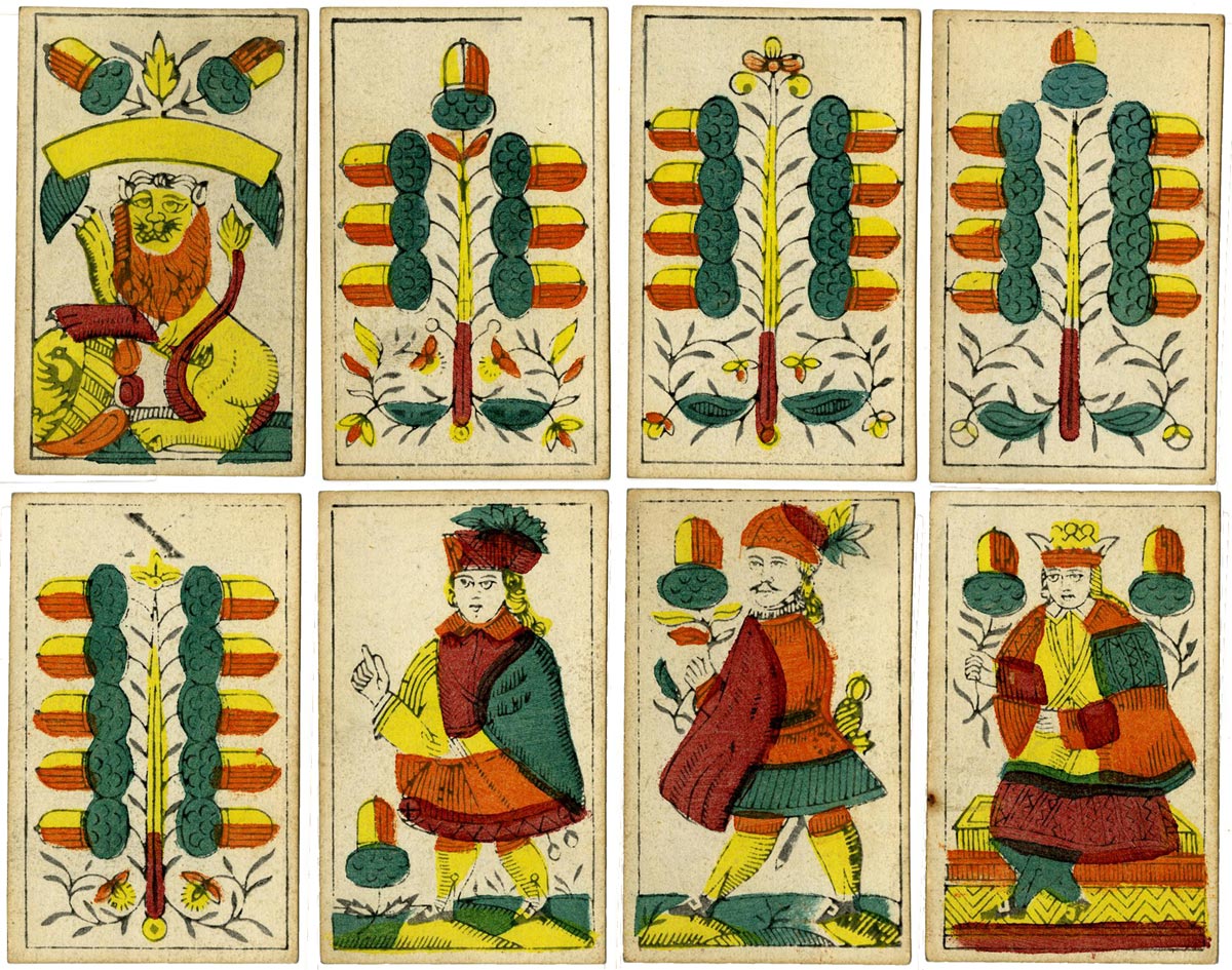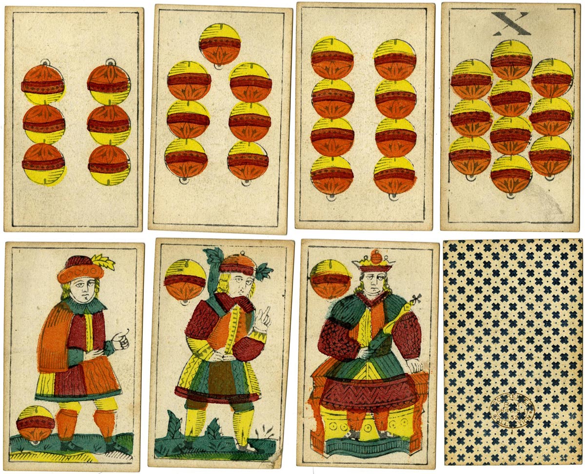 An early Bavarian-style deck by Johann Conrad Jegel, Nürnberg, Germany , c.1835.