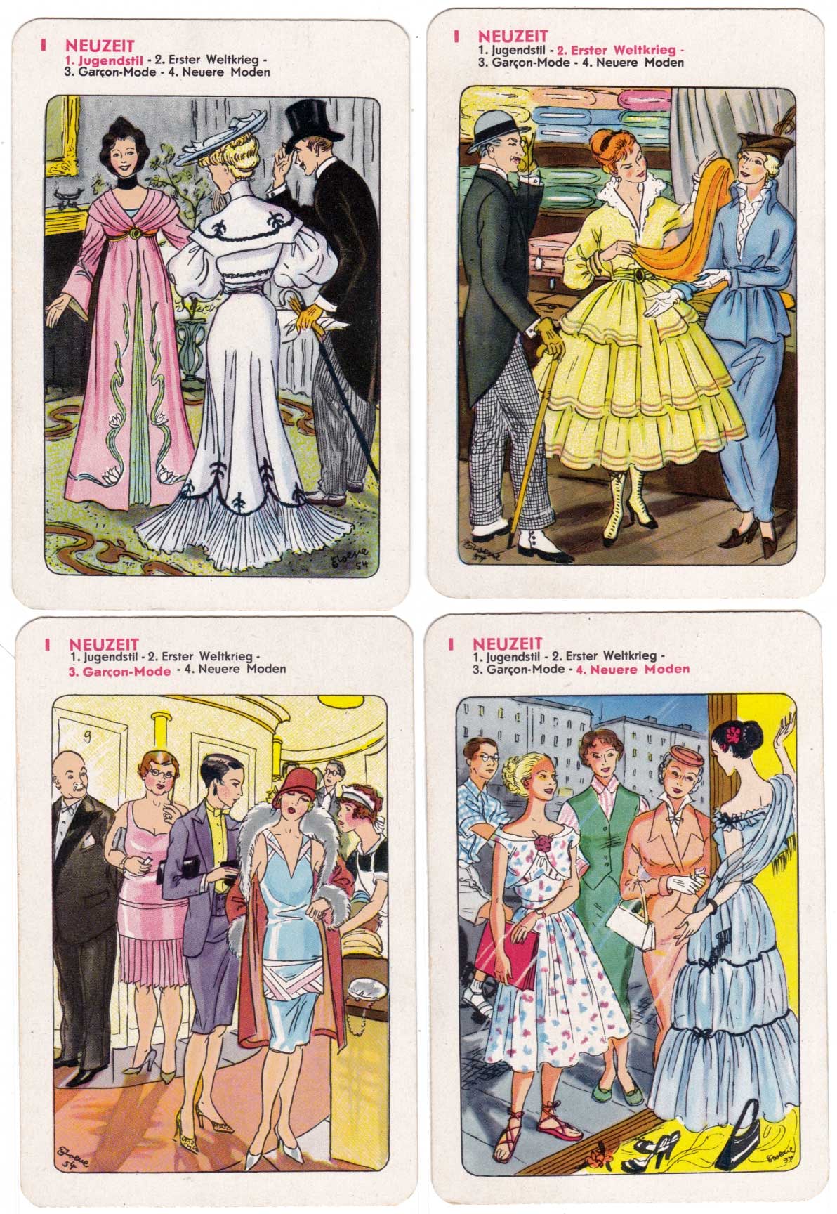 ‘History of fashion’ cultural quartet game designed by Erika Werner-Nestler, 1954.