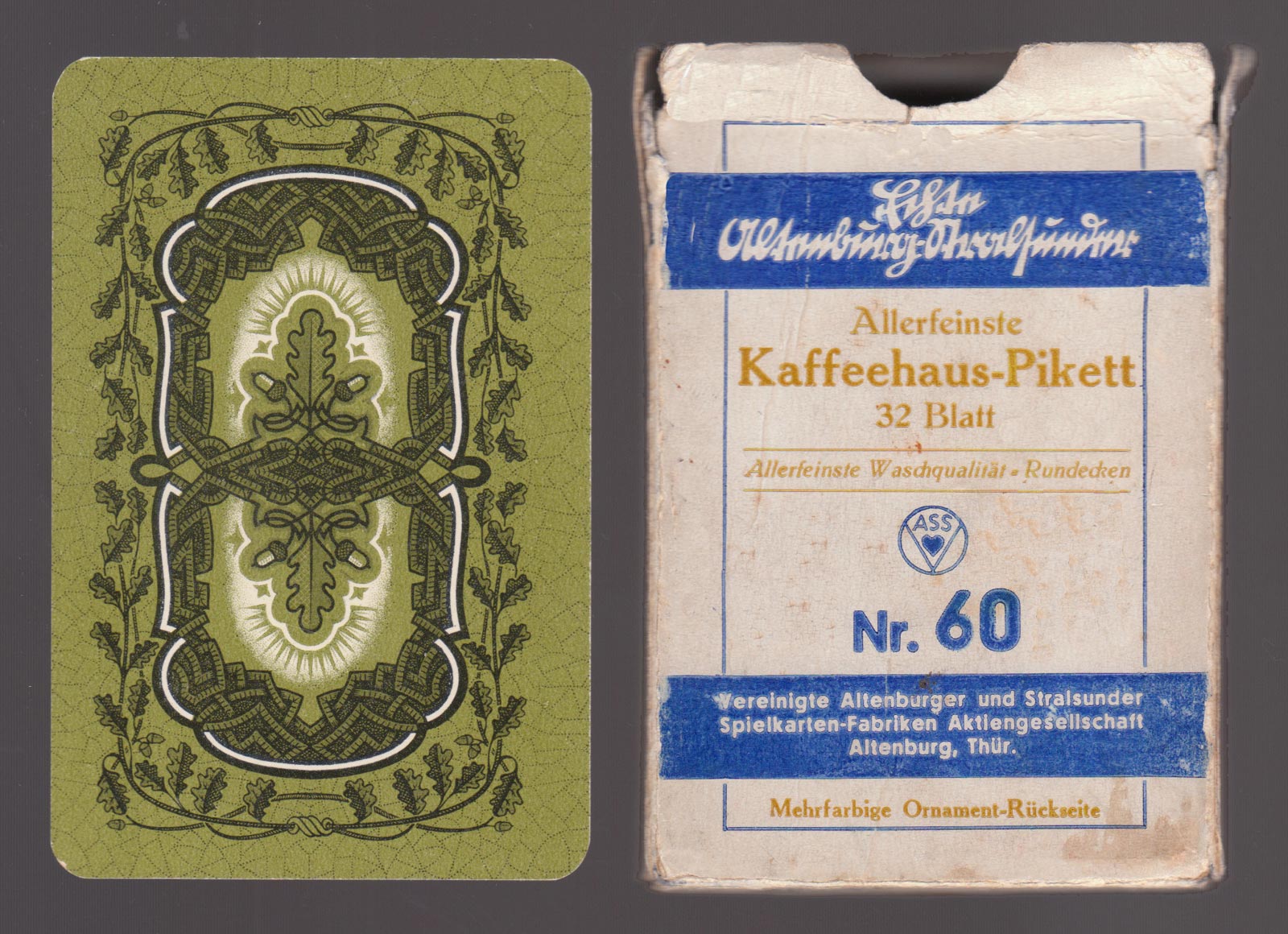 Authentic Altenburger Skat cards with German suits (Acorns, Hearts, Leaves, Bells).