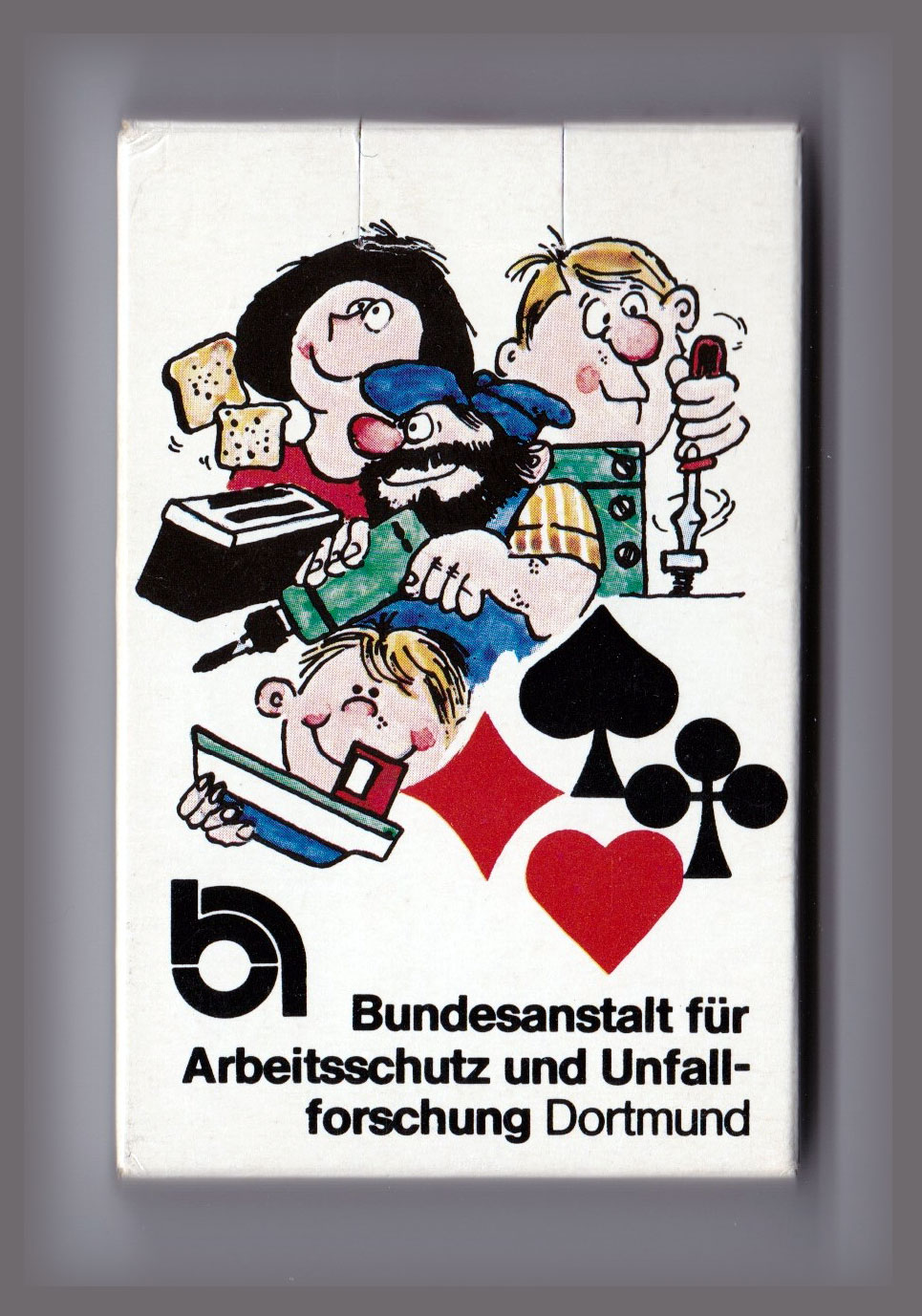 Health & Safety cartoon deck made specially for Bundesanstalt für Arbeitsschutz und Unfallforschung (‘Federal Institute for Occupational Safety and Accident Research’), Dortmund, 1978. See the Box►