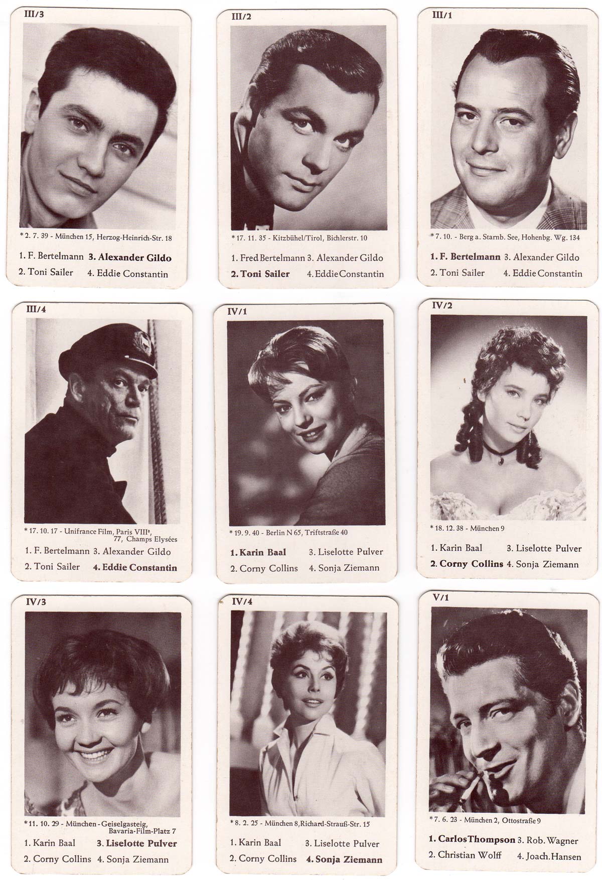 Filmstar-Parade Quartet card game published by F X Schmid, Munich, c.1958.