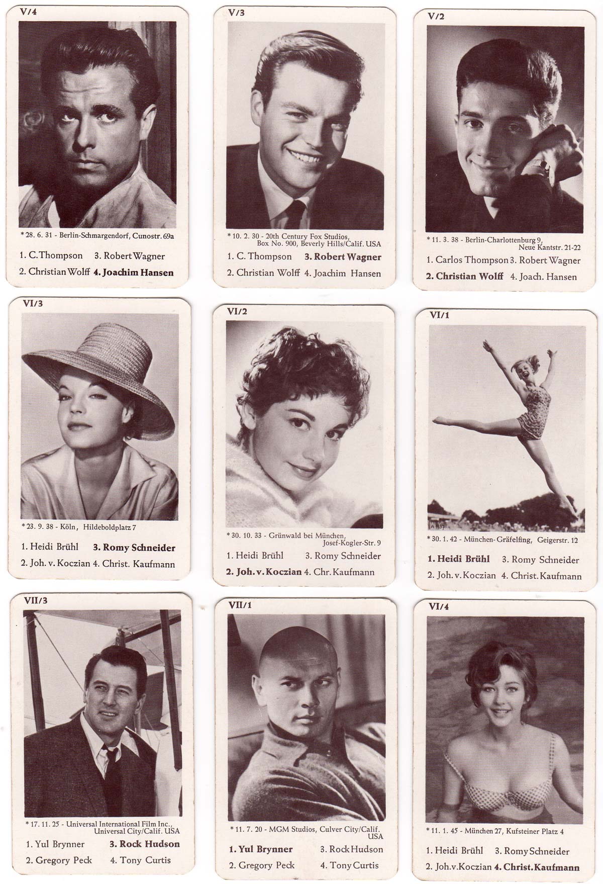 Schlager Film Revue “Hot and Sweet” Quartett für Teenager, 1964. ASS and ASS-Top made hundreds of these types of sets covering many themes but not many with film star cards. See the Rules►