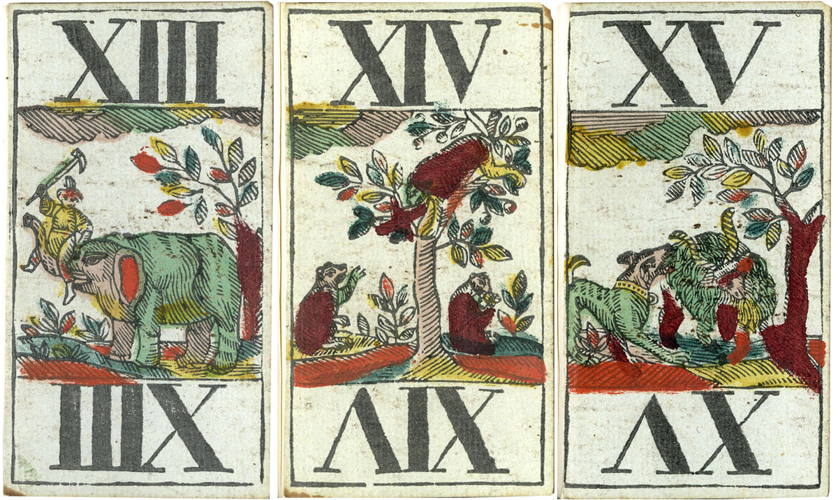 Early 19th century Animal Tarot pack produced by J T Dubois, Liège, Belgium.