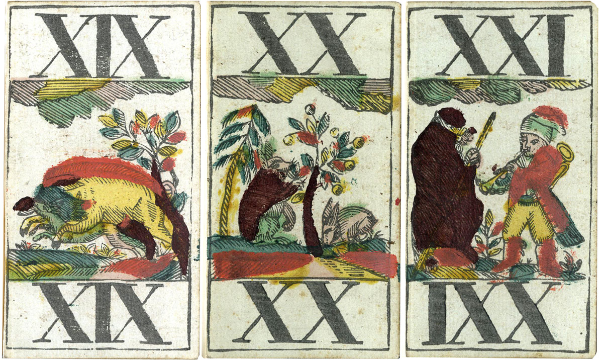 French-suited ‘Bavarian Animal Tarot’ by Johann Matheus Backofen, Nürnberg, late 18th C.