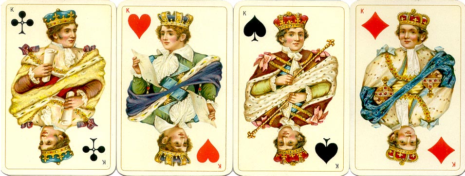 The maker's name can be read on the Jack of Clubs. The deck was exported to Switzerland and Denmark, and was sold in England through the importing agent Edward Hamilton (later Hamilton, Hills & Co., London E.C.), as “The Imperial Pack of Unique Playing Cards No.172”. It was also produced in patience size during the 1980s. Images courtesy Barney Townshend.