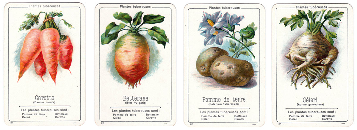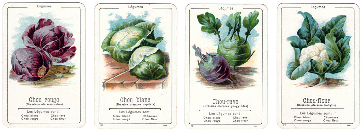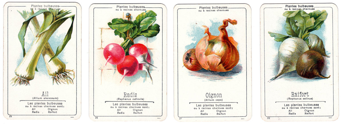 Left: “Fruits et Légumes des Champs et des Jardins” No.342 published by B. Dondorf, Frankfurt am Main, Germany in c.1900. 40 cards in telescopic box. Images courtesy Rex Pitts.