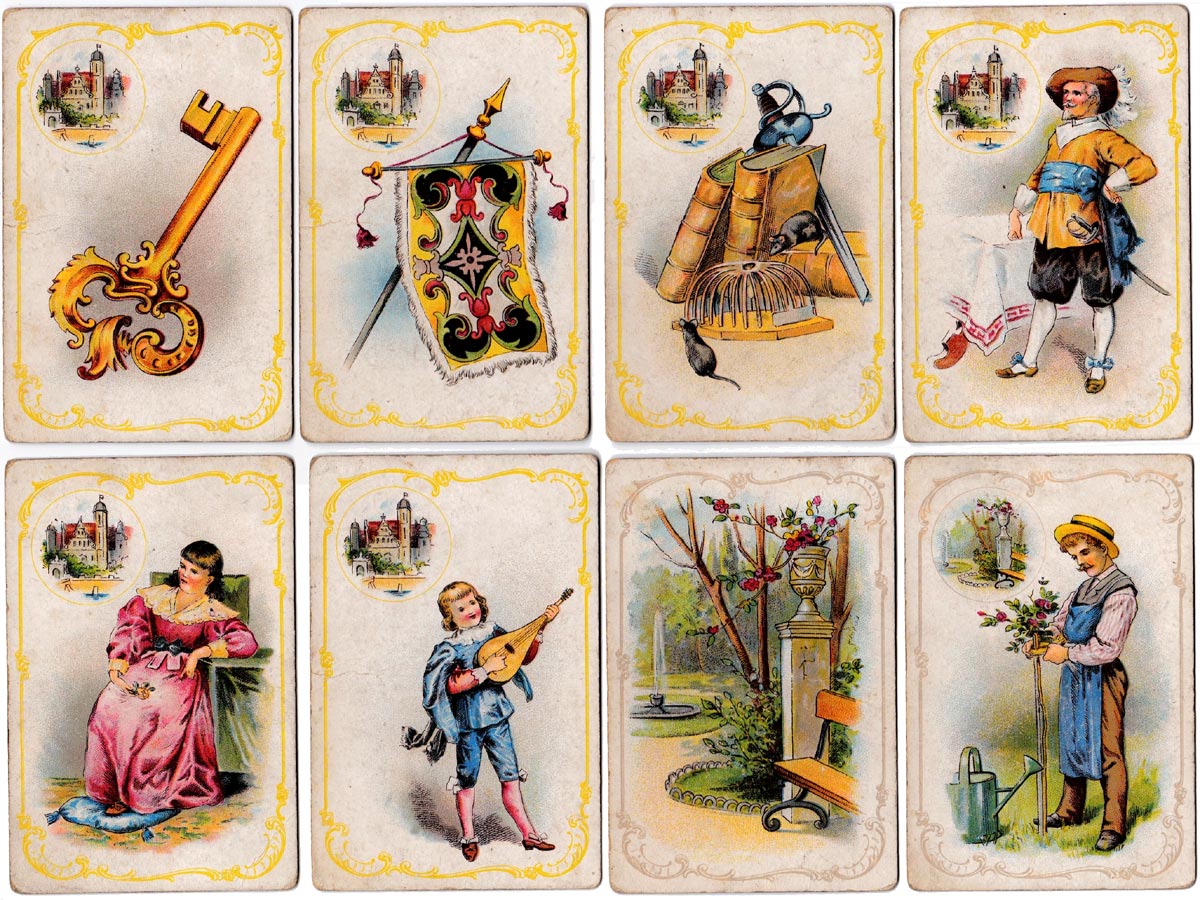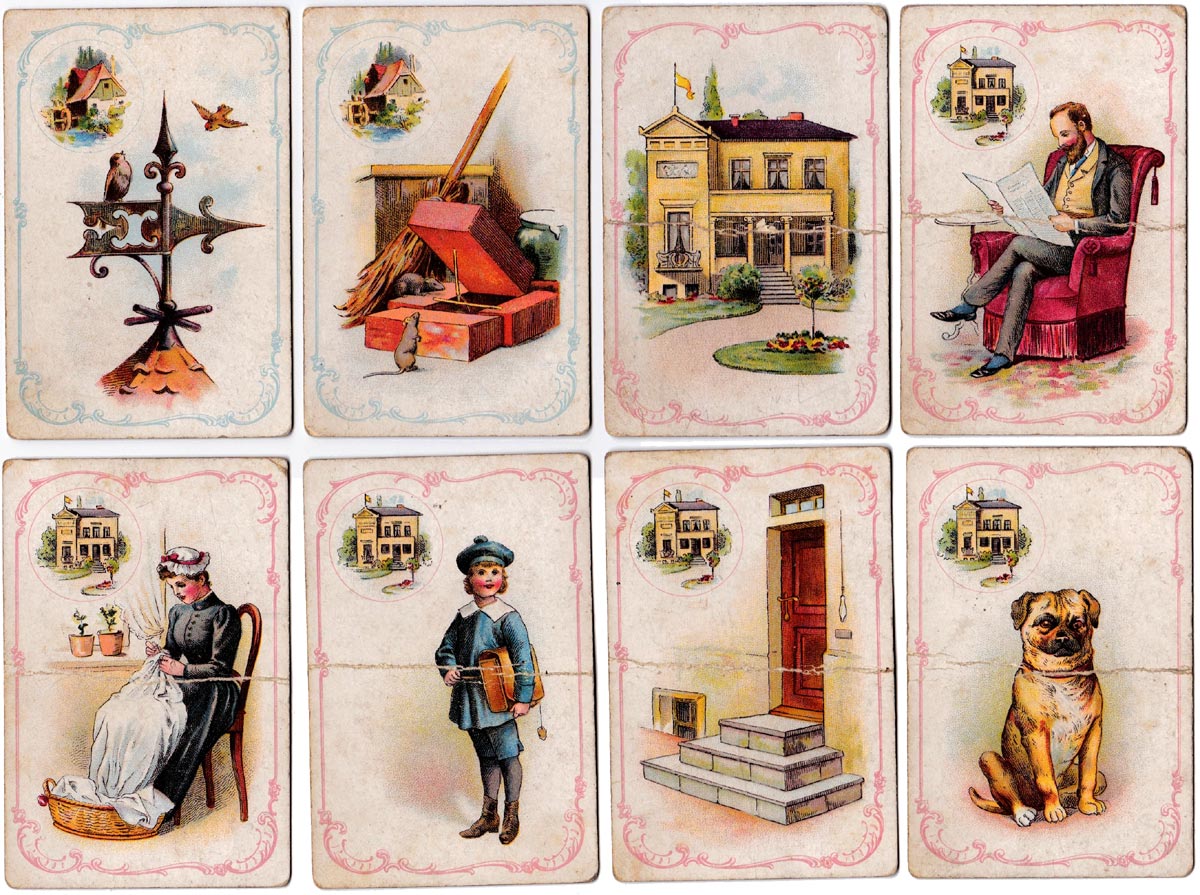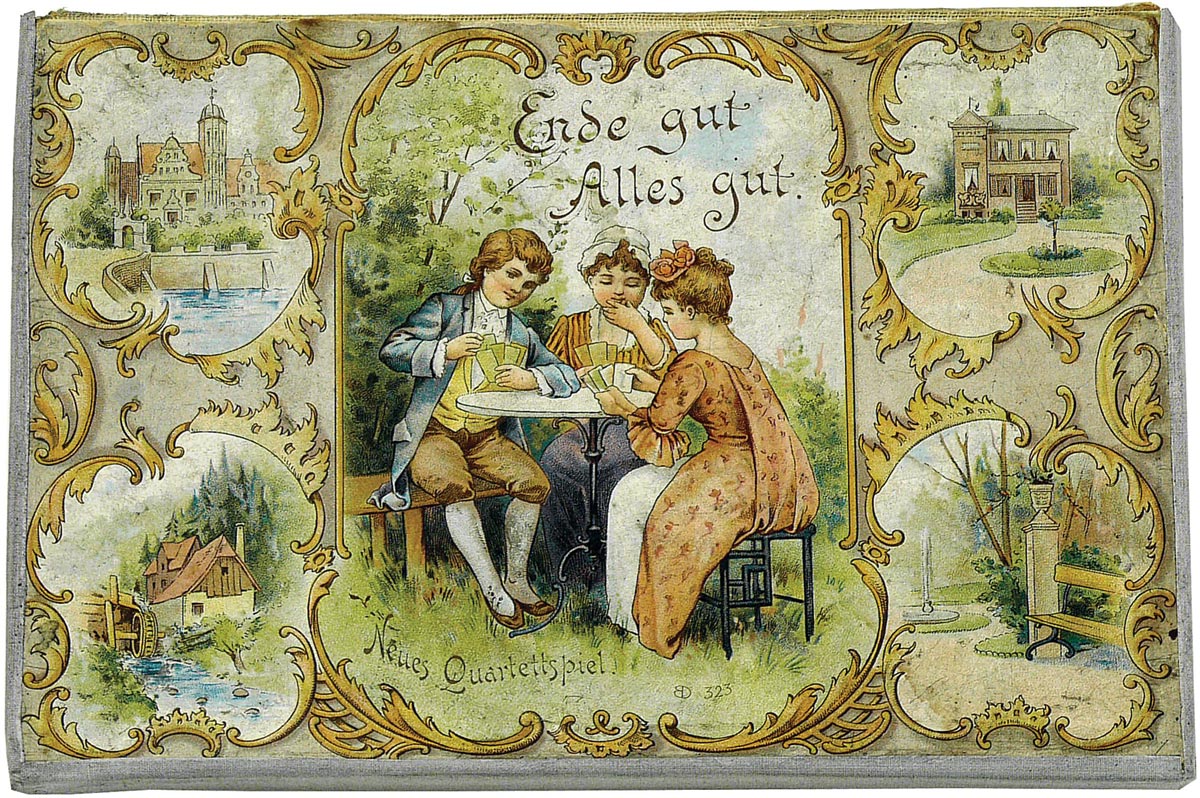 Above: ‘Tout Est Bien Qui Finit Bien’ family card game by Dondorf, No.323. 40 cards + rules in box. Late 19th century. The German language edition was titled ‘Ende gut / Alles gut’►