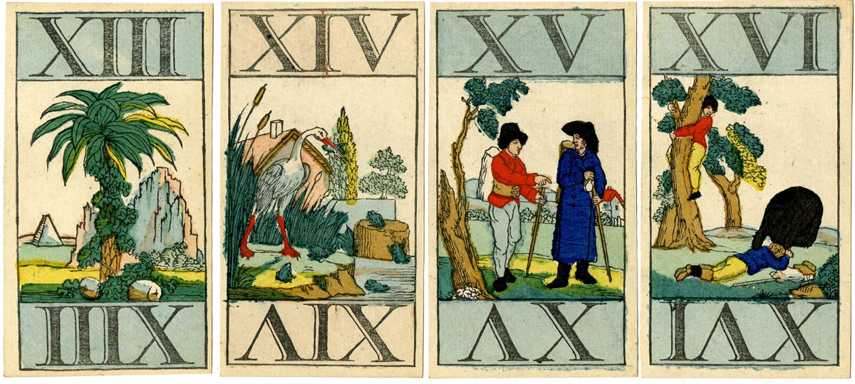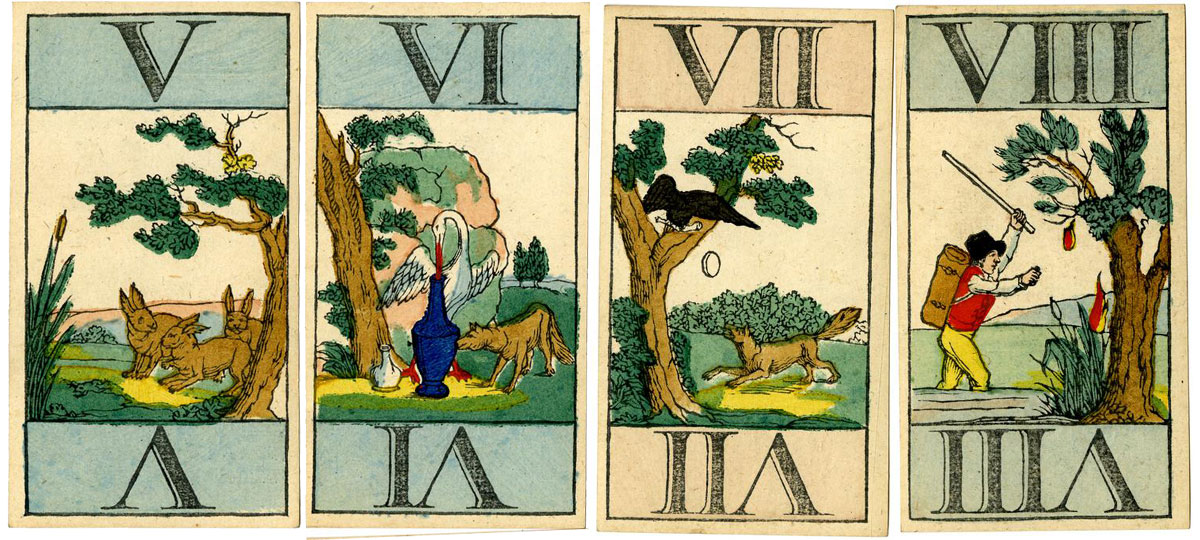 French-suited Æsop’s fables tarot produced by Leipzig Industrie Comptoir, c.1800-1825.