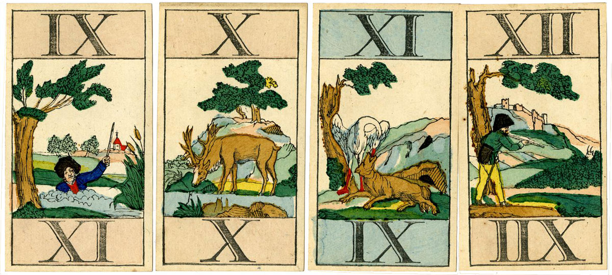 French-suited ‘Bavarian Animal Tarot’ by Johann Matheus Backofen, Nürnberg, late 18th C.