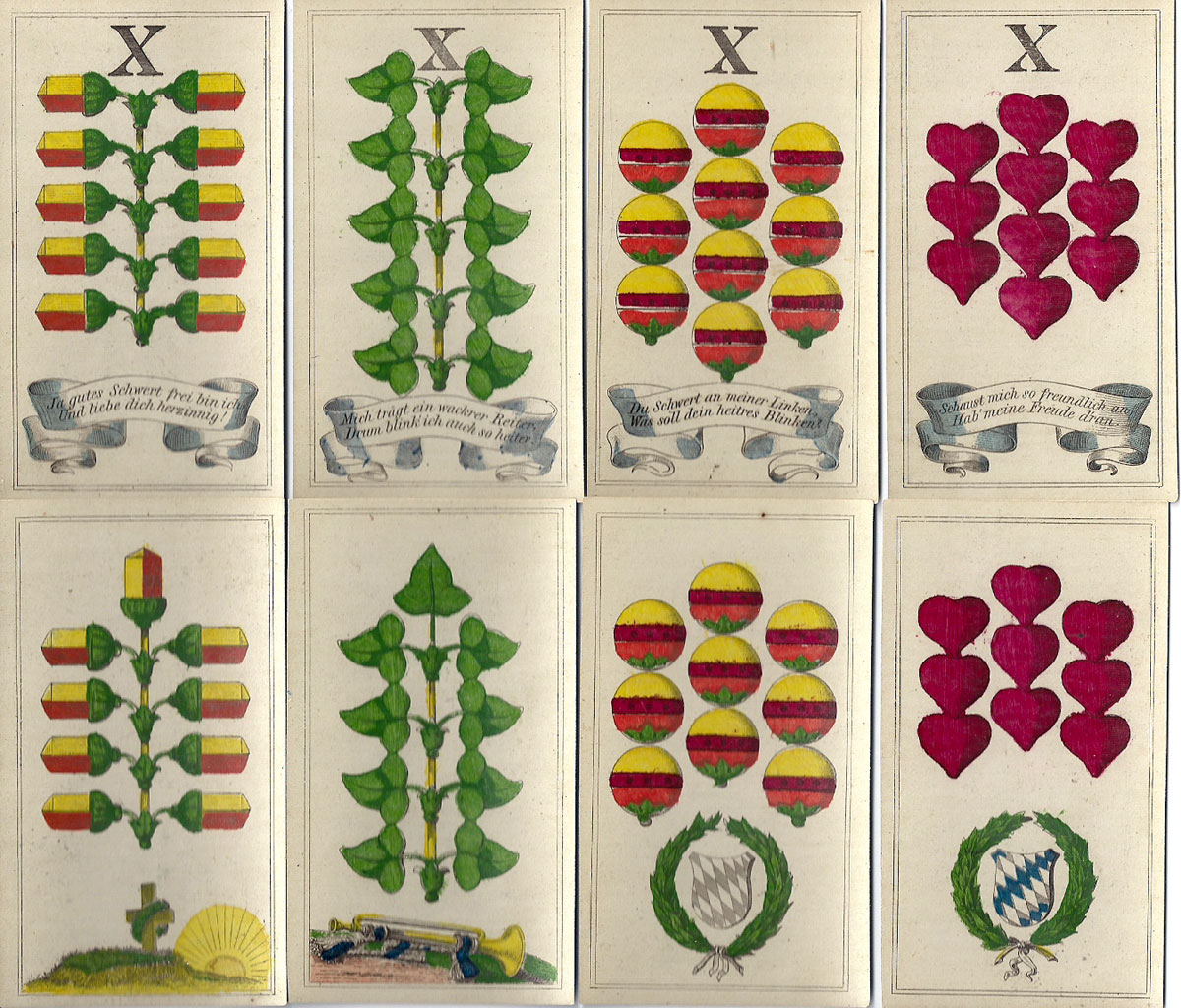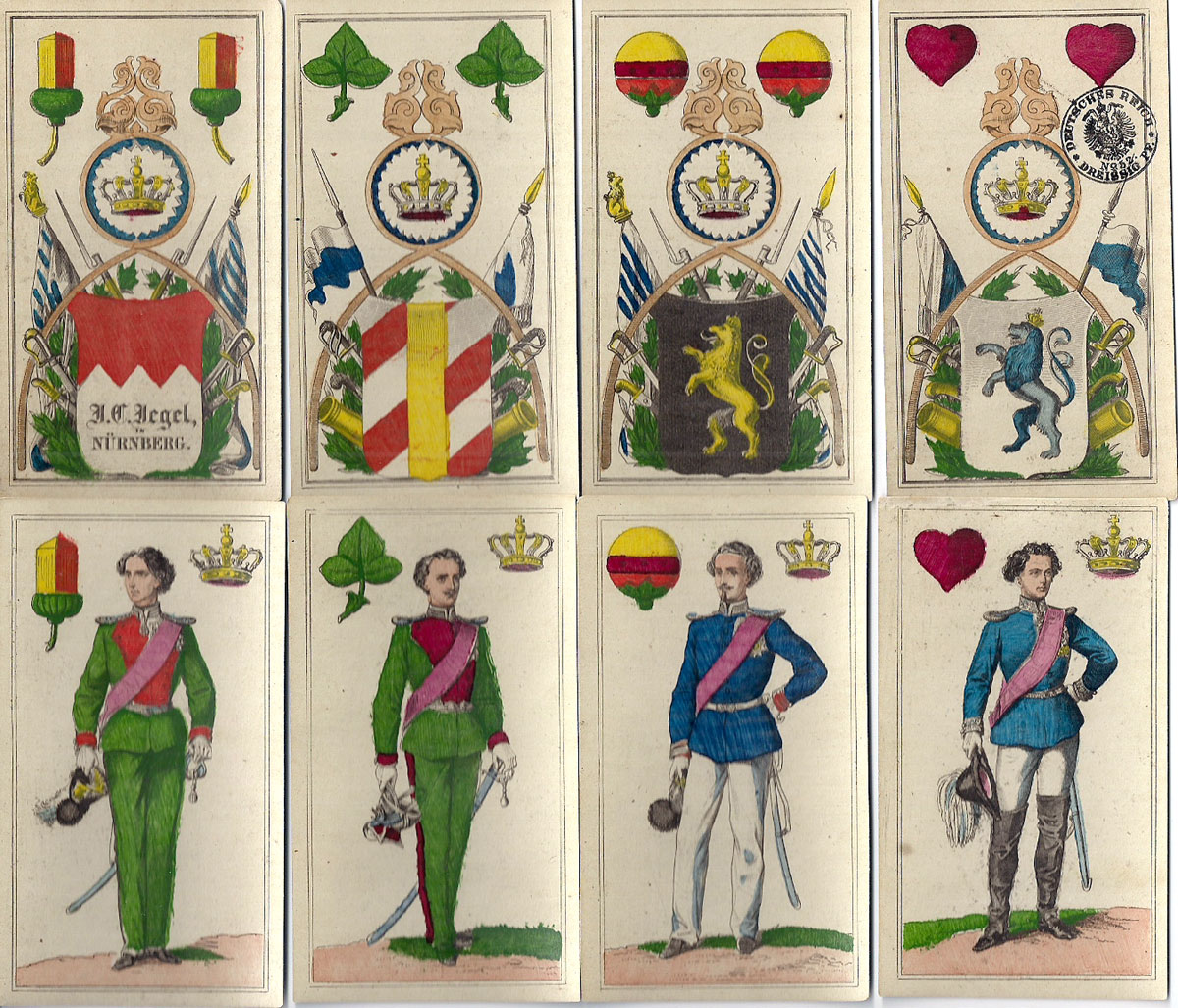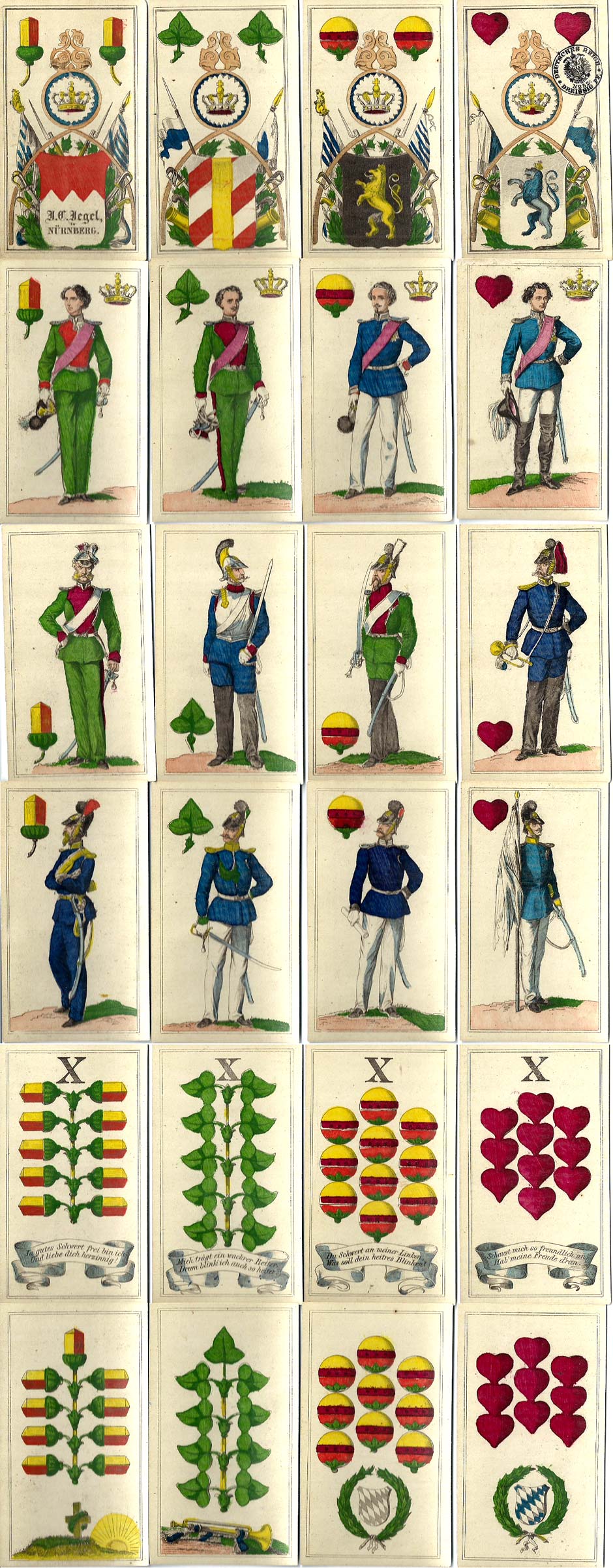 An early Bavarian-style deck by Johann Conrad Jegel, Nürnberg, Germany , c.1835.