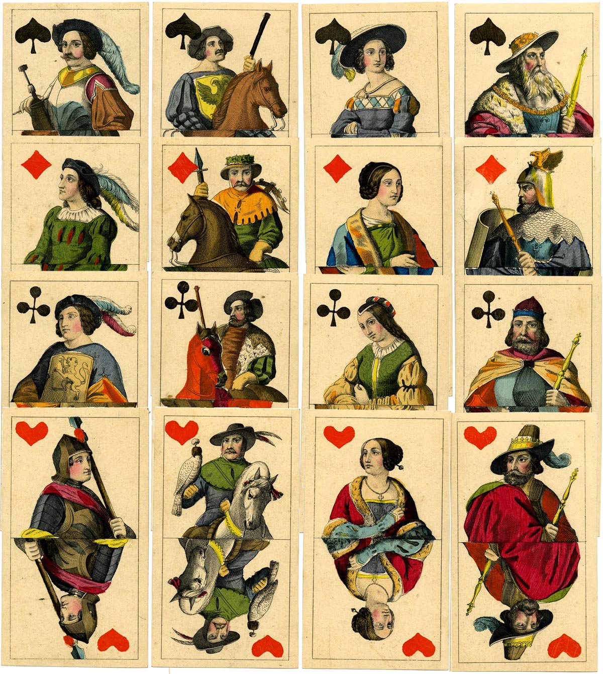 An early Bavarian-style deck by Johann Conrad Jegel, Nürnberg, Germany , c.1835.