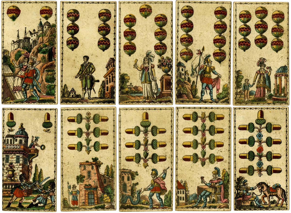 An early Bavarian-style deck by Johann Conrad Jegel, Nürnberg, Germany , c.1835.