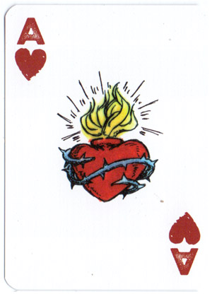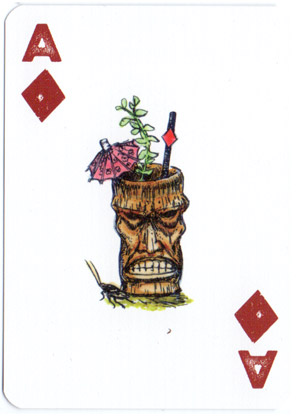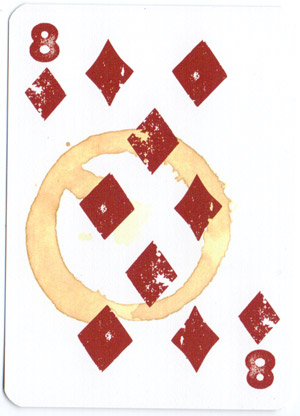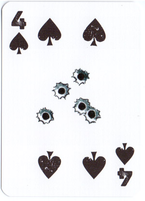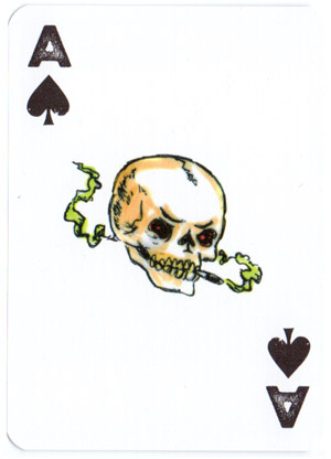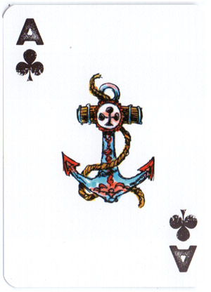 Poker Faces playing cards were illustrated by Alex Elsen and published by Verlag Um Die Ecke, Germany, 2015, evoking the seedy underworld of organised crime, tough guys, loose women, bartenders, Mafia brides and sailors. The cards are produced with grungy typefaces and additional details such as bullet holes, whisky stains and insects make this high quality deck guarantee hours of fun and enjoyment. Available from Poker Faces→