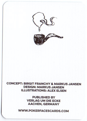 Poker Faces playing cards were illustrated by Alex Elsen and published by Verlag Um Die Ecke, Germany, 2015