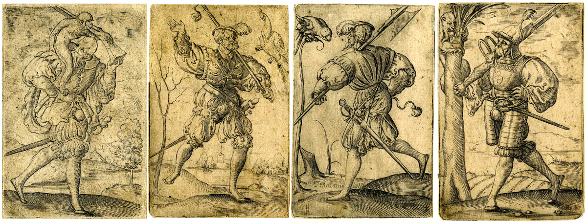 Above: set of 52 playing-cards designed and etched by Virgil Solis, Nuremberg, c.1545-50. No coloured examples are known. Sizes vary around 92x62 mm. © The Trustees of the British Museum