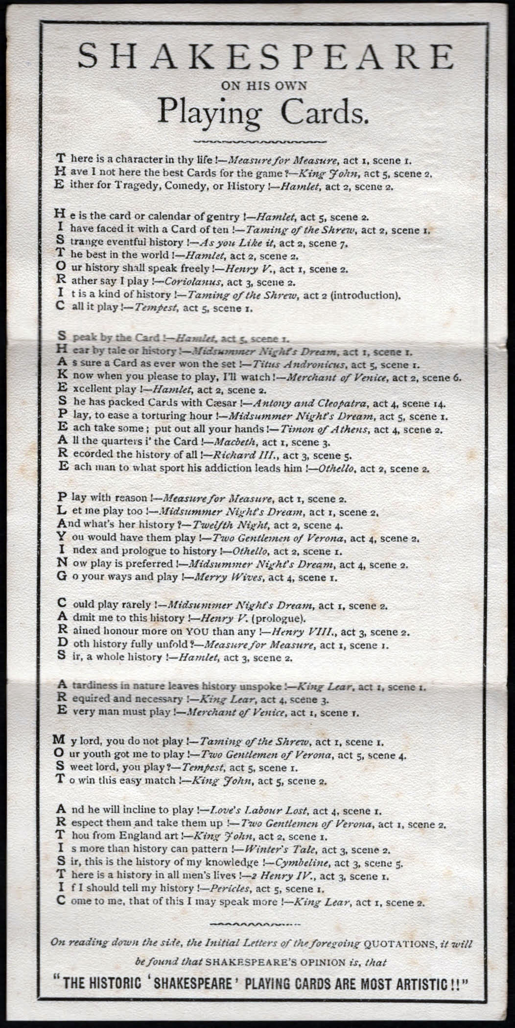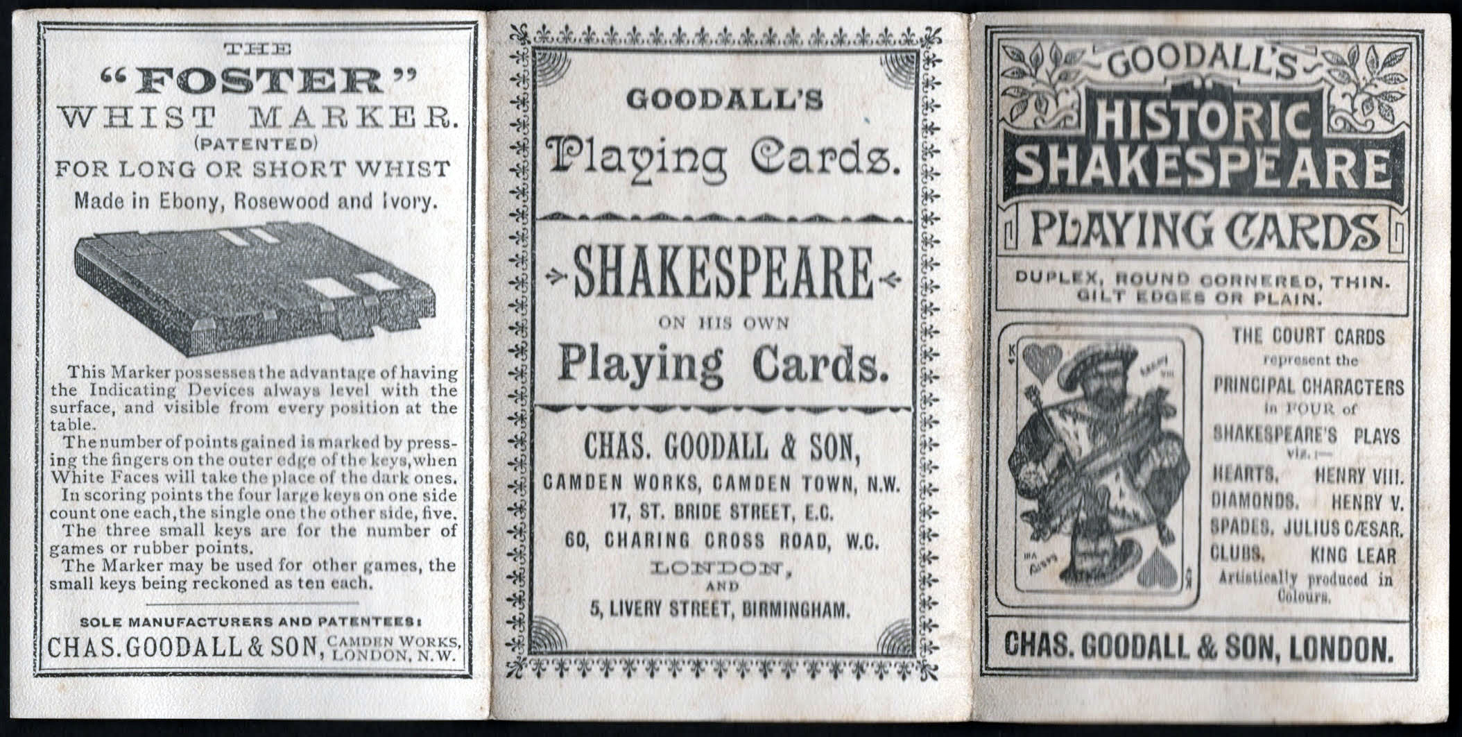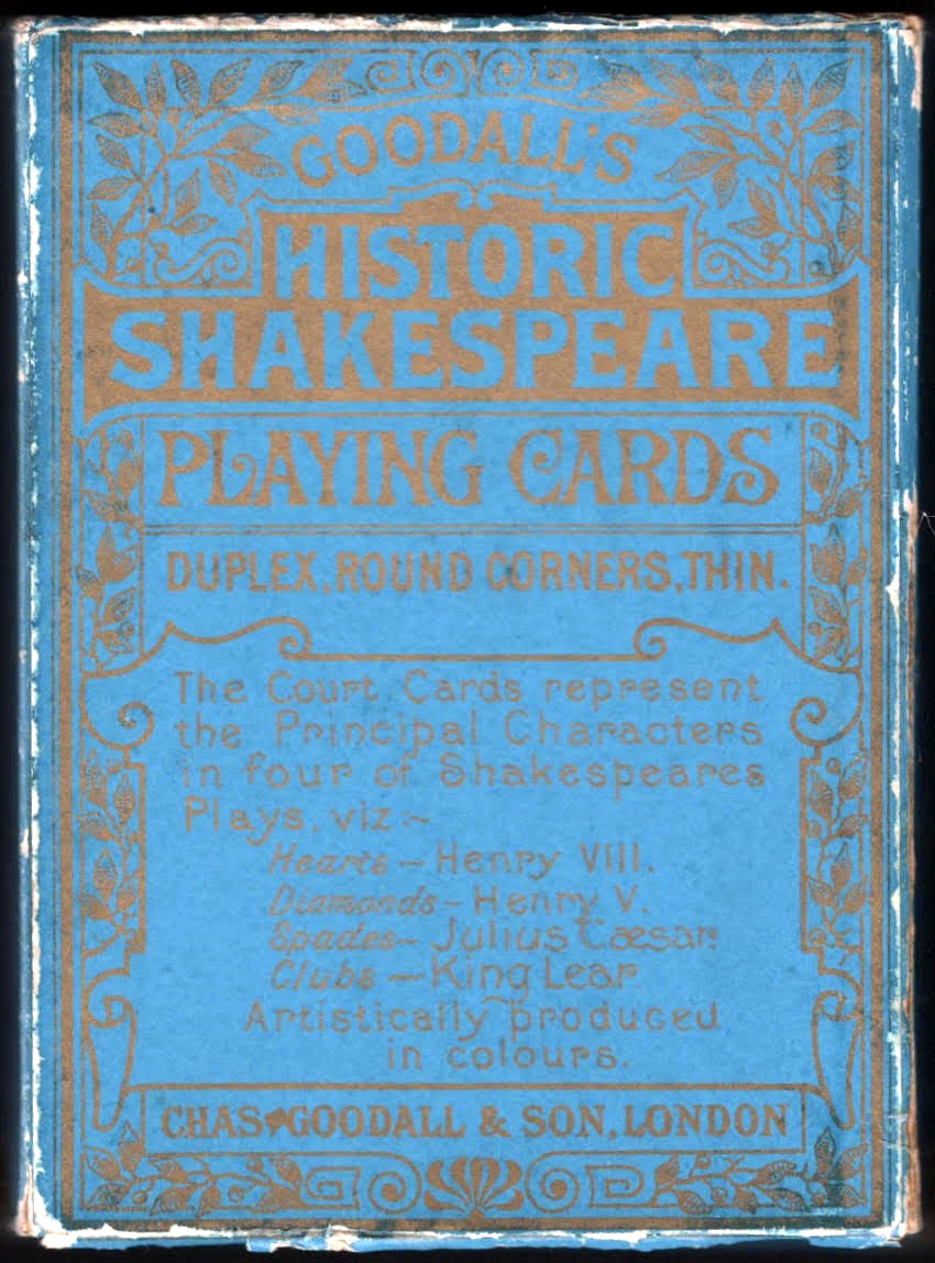 “Historic Shakespeare” playing cards featuring Shakespearean characters by Chas Goodall & Son.