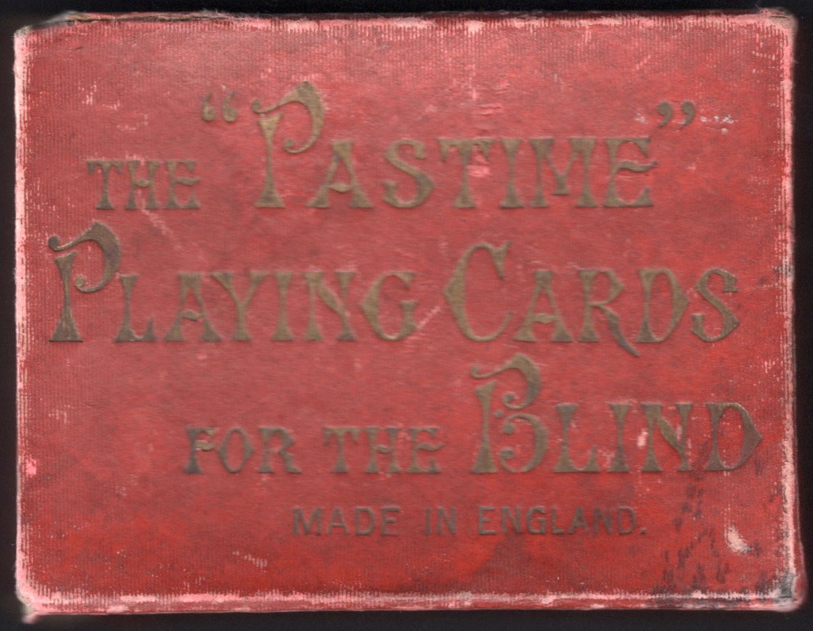 Above: Pastime Playing Cards for the Blind manufactured by Goodall & Son Limd, London, c.1910. 52 cards + joker in box.